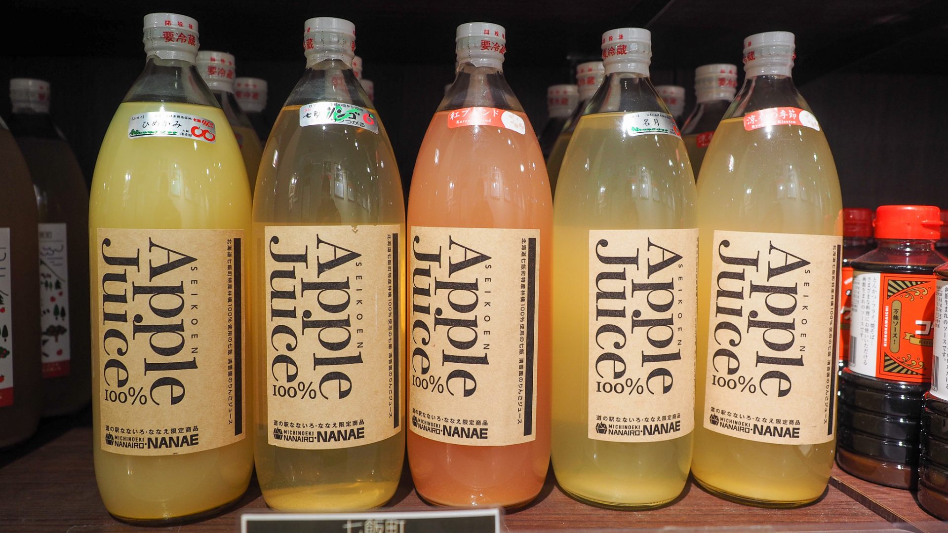 そして、「なないろ・ななえオリジナル りんごジュース」(みやご果樹園/1,100円)は、酸化防止剤不使用のジュースだそう。