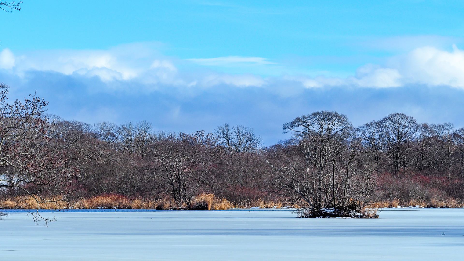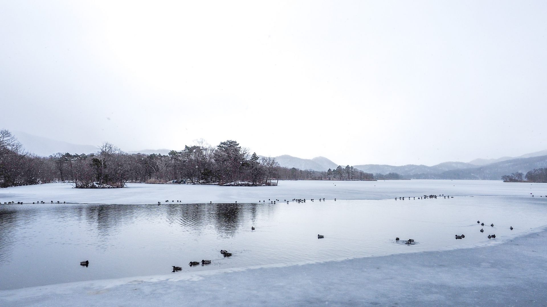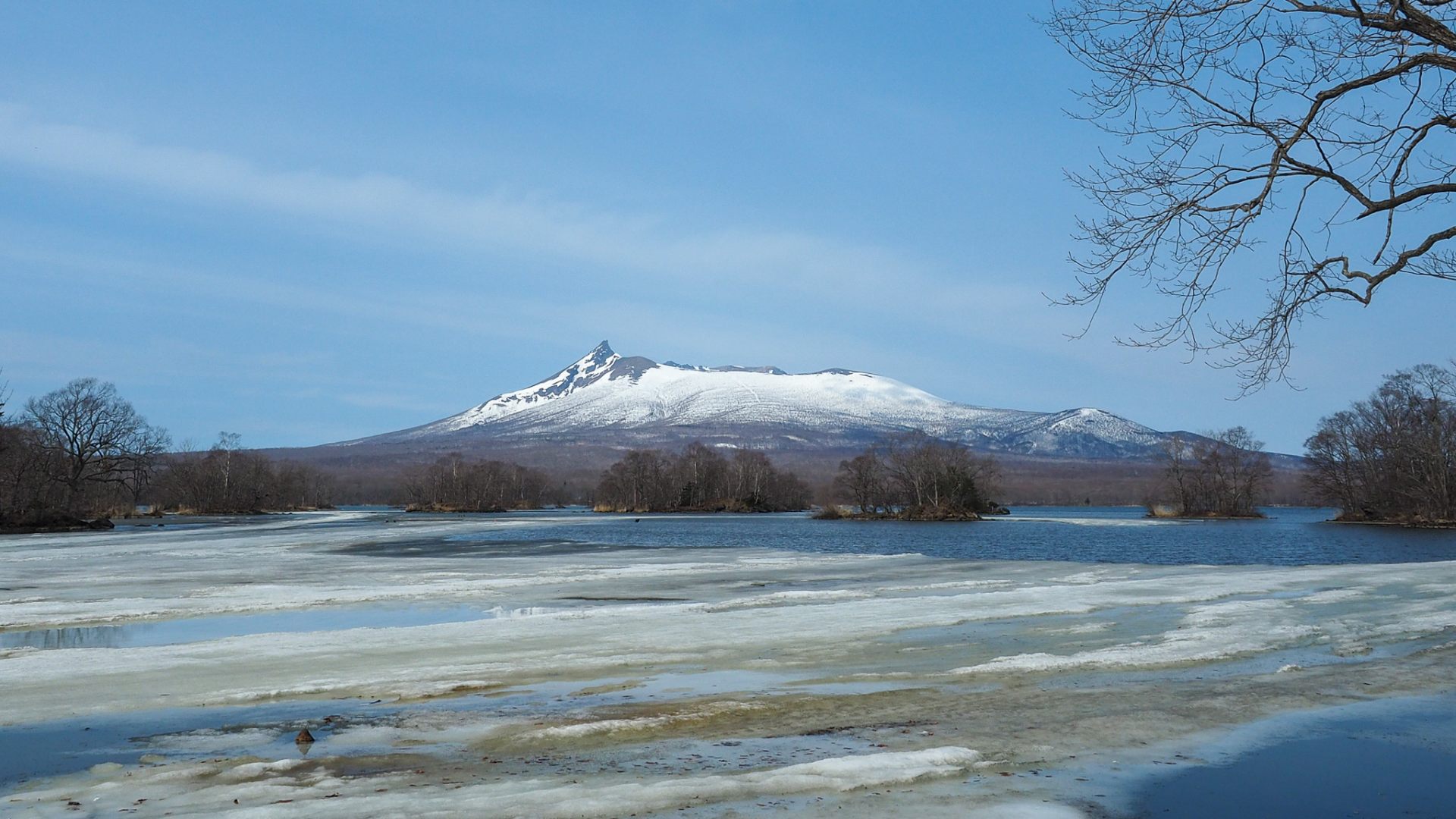 厳冬期には湖面が氷り、一面真っ白になっていますが、3月ともなると氷がゆるみはじめます。