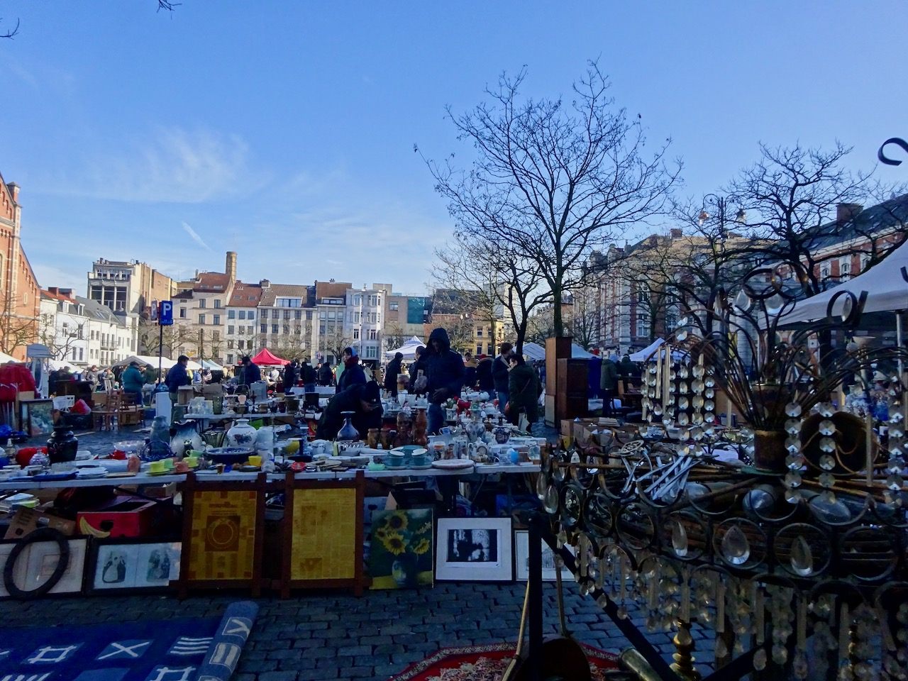 さて、まずはブリュッセルを代表する、ジュ・ド・バル広場の蚤の市です。ここの特徴はなんといっても、毎日開催されることです。品揃えの良さ、にぎわい共に、週末が勝るようです。取扱商品は、全て中古品です。家具から、アート、本、電気製品、衣類、アクセサリー、食器やキッチン周りの雑貨、おもちゃやインテリア雑貨も揃います。