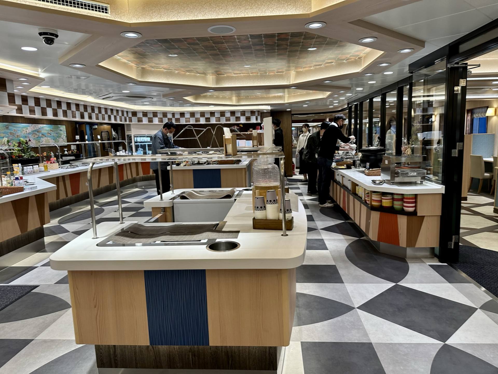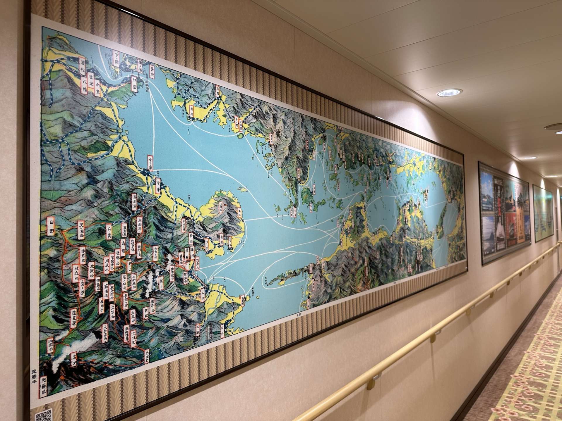 開放的な3層吹き抜け部とプロジェクションマッピングは「さんふらわあ」新造船の大きな特徴ですね。