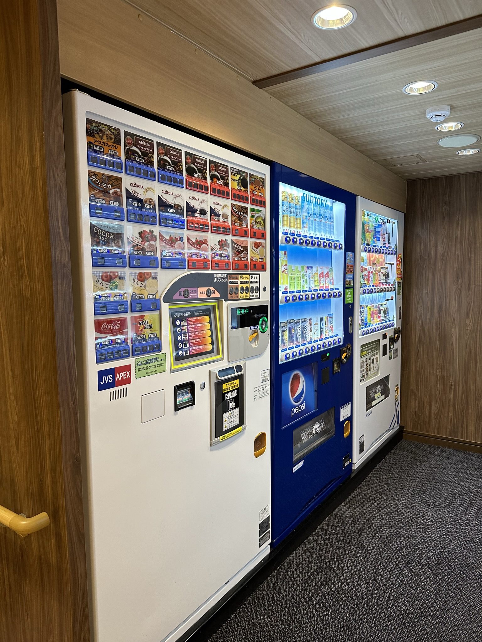 自販機も充実しています。ドリンクだけでなく、カップ麺やアイスクリーム自販機も設置されています。