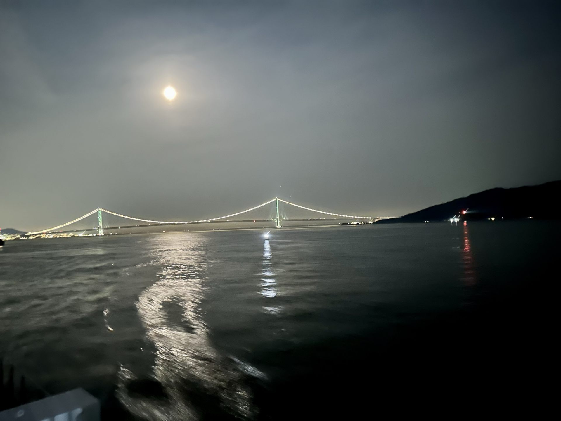 橋の撮影には都度、デッキに出て、波の音を聞いていました。