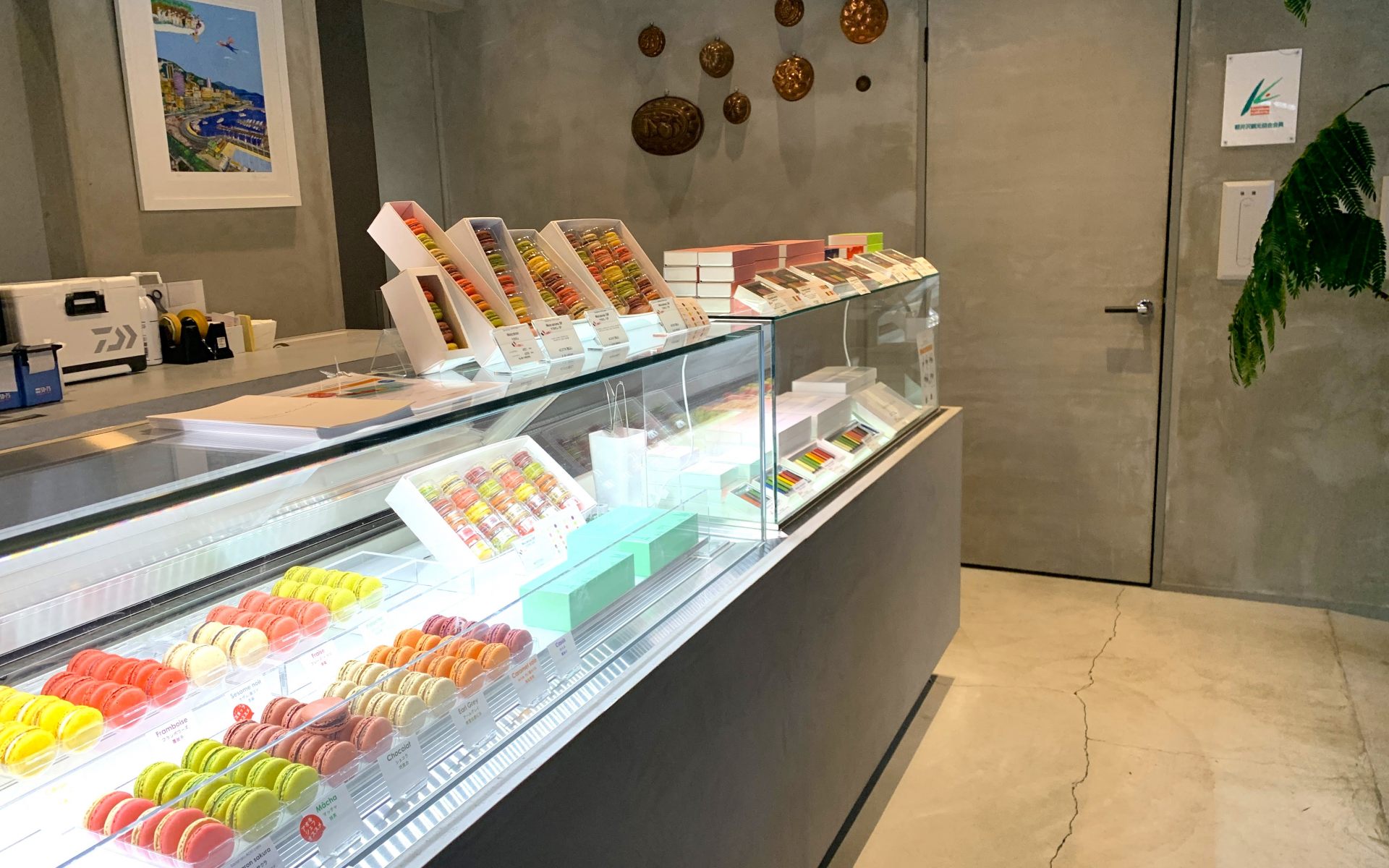 マカロンなどが美しく並びます。家に帰ってから食べさせてもらいましたが、とても美味しかったです