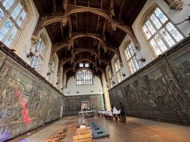 また、ハンプトン・コート宮殿には「Royal School of Needlework(王立刺繍学校)」が入っています。生徒になると、宮殿内の観光客がアクセスできないプライベート部分にある教室で刺繍が学べるそうです(冒頭の噴水の中庭の写真に写っている一室だそう)。王立刺繍学校スタジオでは伝統的に戴冠式で使用されるローブなどの刺繍も担当しています。2023年のチャールズ国王の戴冠式でも9点の刺繍作品が作成されたのだとか。筆者のお友達はこちらの刺繍学校に通っており、次回の戴冠式には間に合うように刺繍の実力を蓄えたいとのことでした。頑張ってほしいです!(チャールズ国王と友人のどちらも)刺繍に興味がある方はぜひ調べてみてください。