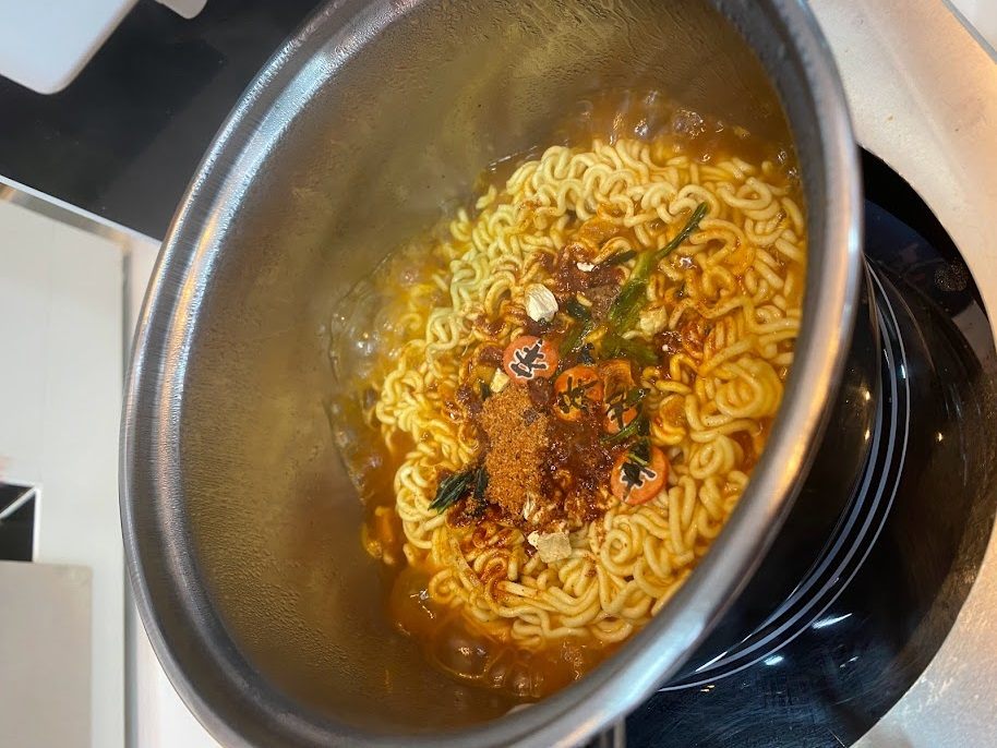 中にインスタントラーメンを自分で作って食べるお店があり