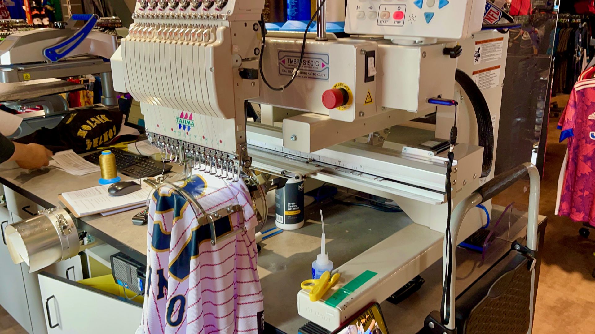 また余談ですが、お手持ちの選手のジャージに刺繍だけ15ドル(糸の色で値段が若干別)で入れてくれるそうです。