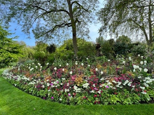 ロンドンを代表する公園の1つであるハイドパーク。夏は音楽フェスティバル、クリスマスには仮設遊園地のようなウィンター・ワンダーランドが開催されることでも有名です。ハイドパークは見どころも多いのですが、今回歩くルートに近いのはThe Rose Garden(ザ・ローズ・ガーデン)とThe Serpentine(サーペンタイン)ですね。ローズ・ガーデンは6月頃がバラの見頃とのことですが、5月現在でも花を見ることができました。サーペンタインは1730年に作られたレジャー用の人口湖です。なんと夏場にはカフェの近くのLidoでは泳ぐこともできるのだとか。夏の気温が涼しめのロンドン。日本からの観光客でハイドパークで泳ぎたい人はあまりいない気がしますが、もし年に数日あるかないかの猛暑の日などに当たってしまったのならば検討の余地ありかもしれません(有料です。)