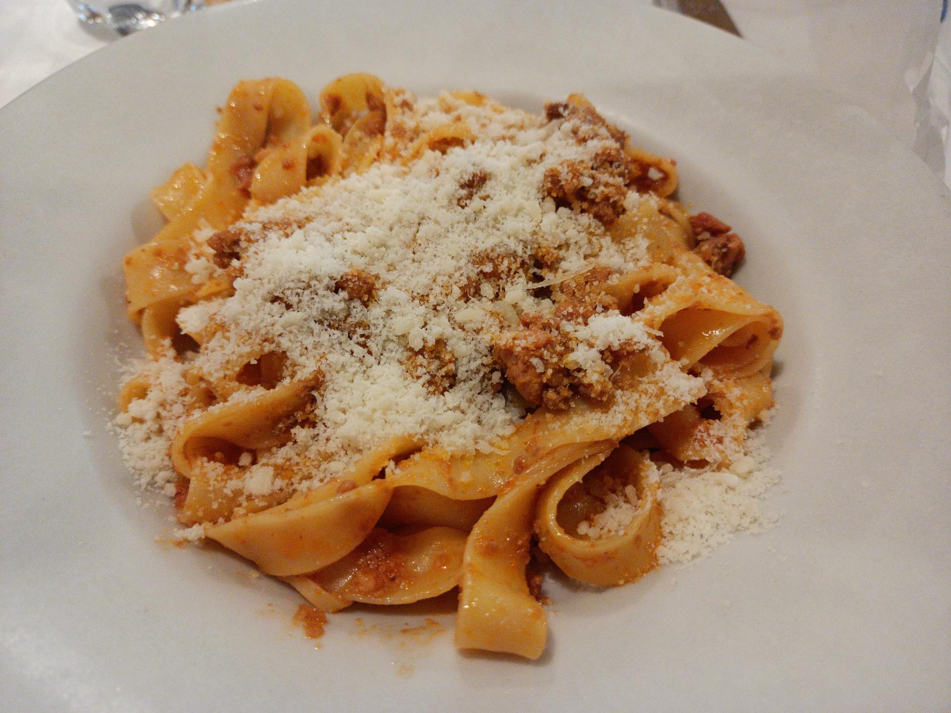 お味の方はモデナ郷土料理!アンティパストはエミリア・ロマーニャ州のサラミがずらり。タリアテッレのラグーはモデナへ来た時にはぜひ食べていただきたいですね!
