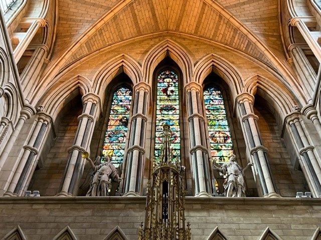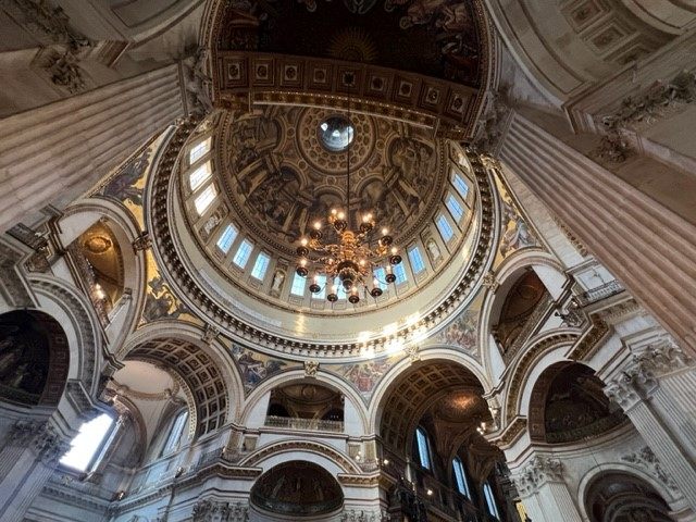 この場所に最初のキリスト教の礼拝堂が建てられてから1400年以上が経ちますが、現在の建物は天才建築家クリストファー・レンが31年の歳月をかけて1697年に完成したものです。ウィンストン・チャーチル元首相の国葬、ダイアナ妃とチャールズ皇太子の結婚式、マーガレット・サッチャー元首相の葬儀などの重要イベントがこの大聖堂で行われています。こちらの大聖堂、外から見るのも美しいですが、せっかくだから内部を見てみたいですよね。おすすめは夕方の礼拝に参加すること。荘厳な大聖堂に響き渡る聖歌隊の歌声が味わえて、更に無料で大聖堂内部に入れます。筆者が参加した晩祷は夕方5時から40分間でした。大聖堂のドームにはたくさんの天窓があり、そこから注ぎ込む優しい日差しがただただ美しいです。英国国教会ですがバロック式で、内部もカトリックのような豪華な装飾なことに気づきます。聖歌隊もホグワーツの制服のようなマントを着ていて英国らしくて素敵でした。ただし、あくまでも宗教儀式のため礼拝中の撮影は禁止なので悪しからず。礼拝の時間はホームページでご確認ください。完全に任意ですが、退出時に現金またはクレジットカードで5ポンドの献金をすることができます。