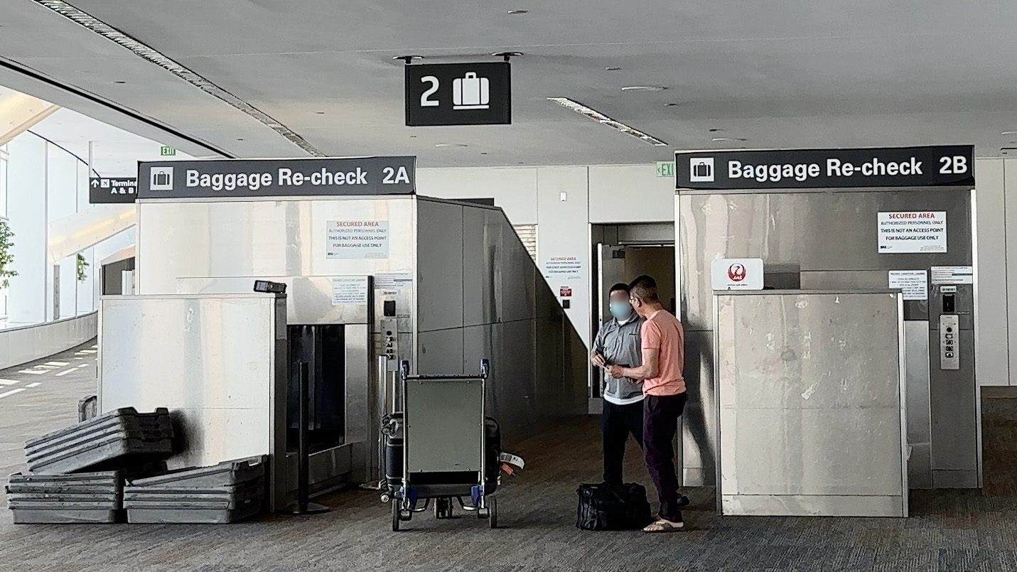 JALなどOneWorld、SkyTeamの便でAゲートに到着の場合、右側に再チェックインのカウンターがありますので。そちらで荷物を預けてください。