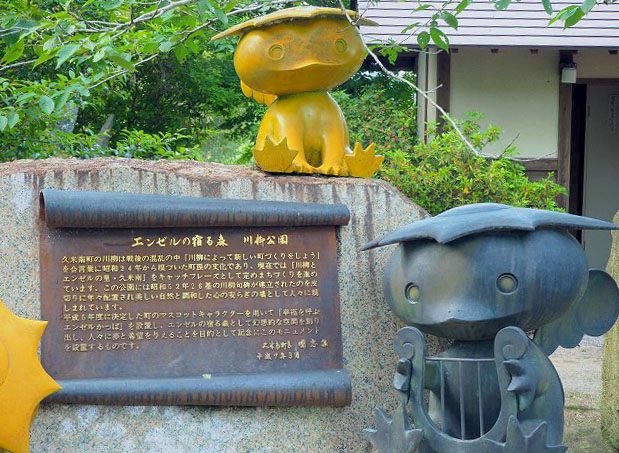写真は「かっぴー」という町のマスコットキャラクターで、町に残る河童伝説の河童とエンゼルのハーフです。
