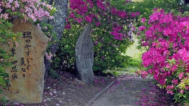 また公園内は、季節ごとに桜、ツツジ、藤がなどが咲き乱れ、句碑だけでなくお花を楽しみに来る人もいます。今年の桜は終わり、新緑の季節を迎え藤やツツジが見ごろとなってきました。