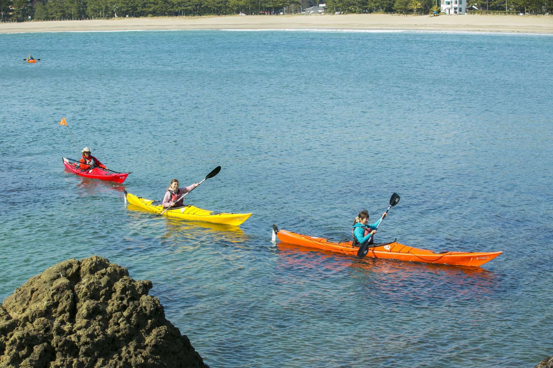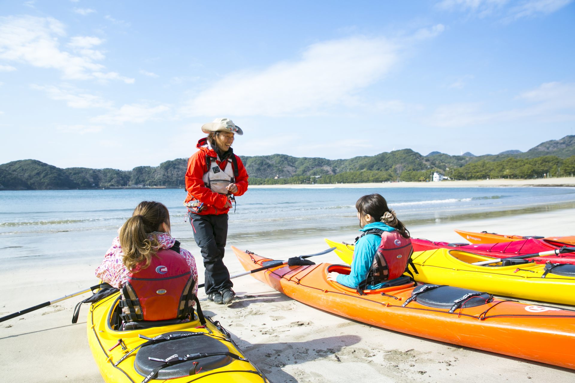 弓ヶ浜から徒歩1分に位置する休暇村南伊豆の宿泊者限定プログラムの初めてのシーカヤック体験。