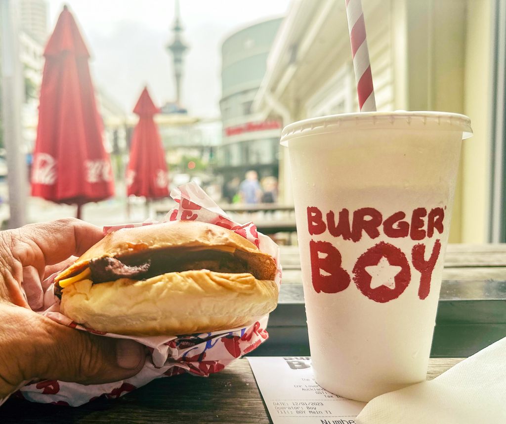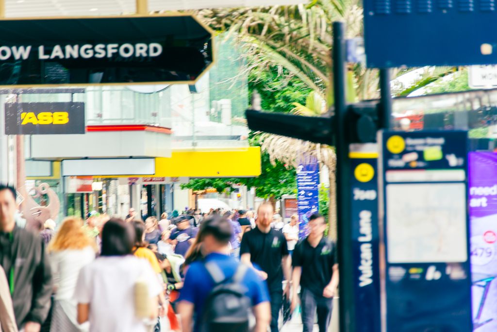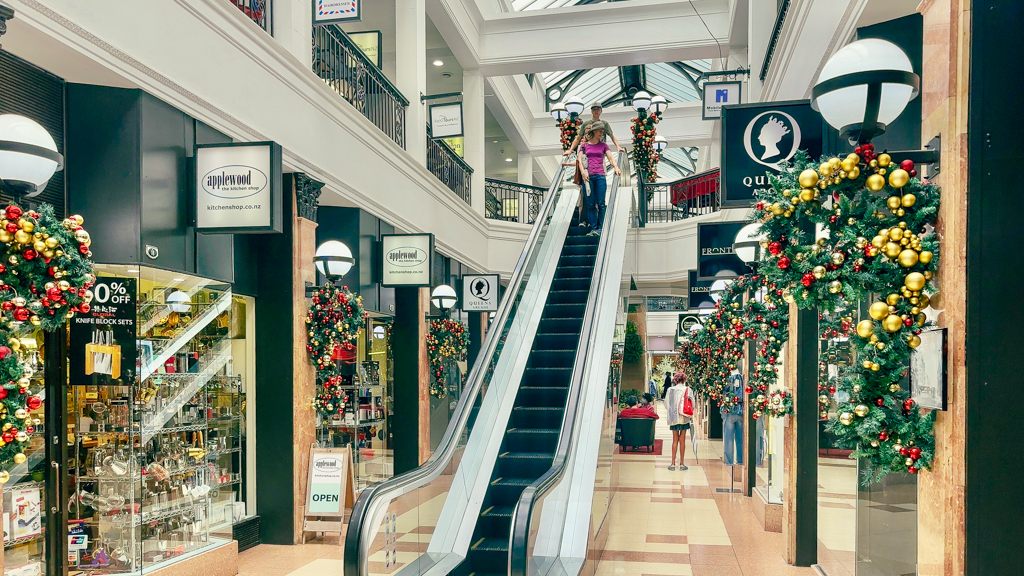 オークランドのメインストリートはクイーンズストリート(Queens St)です。こちらにはブランドショップ始め多くのお店が軒を連ねていました。