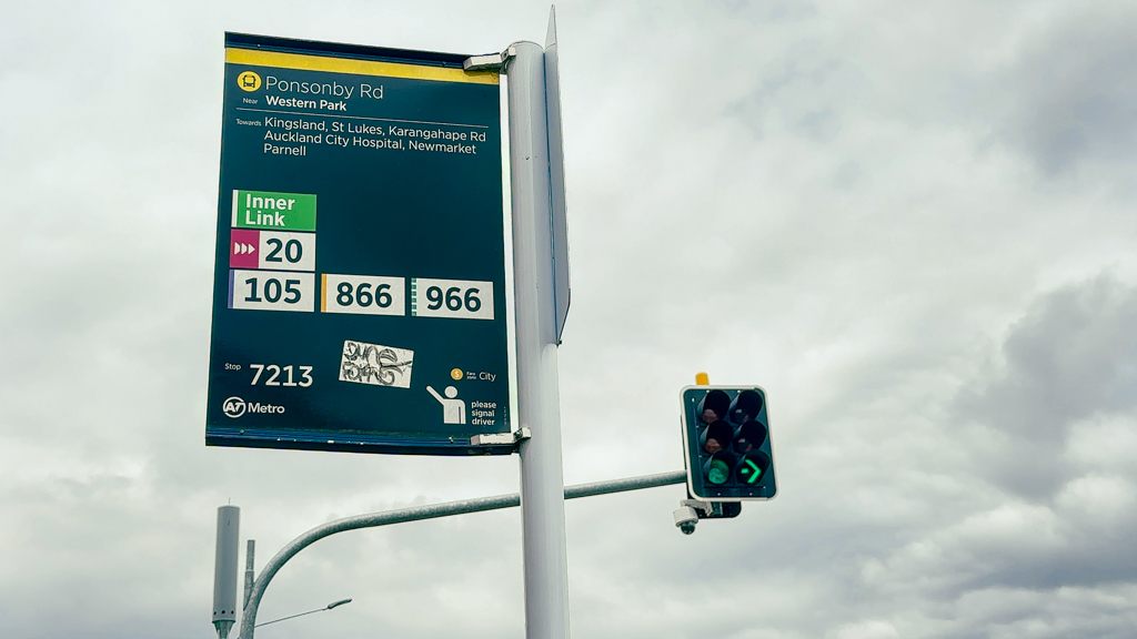 オークランド市内は、Sky CityビルのHobson St側に停留所があります。