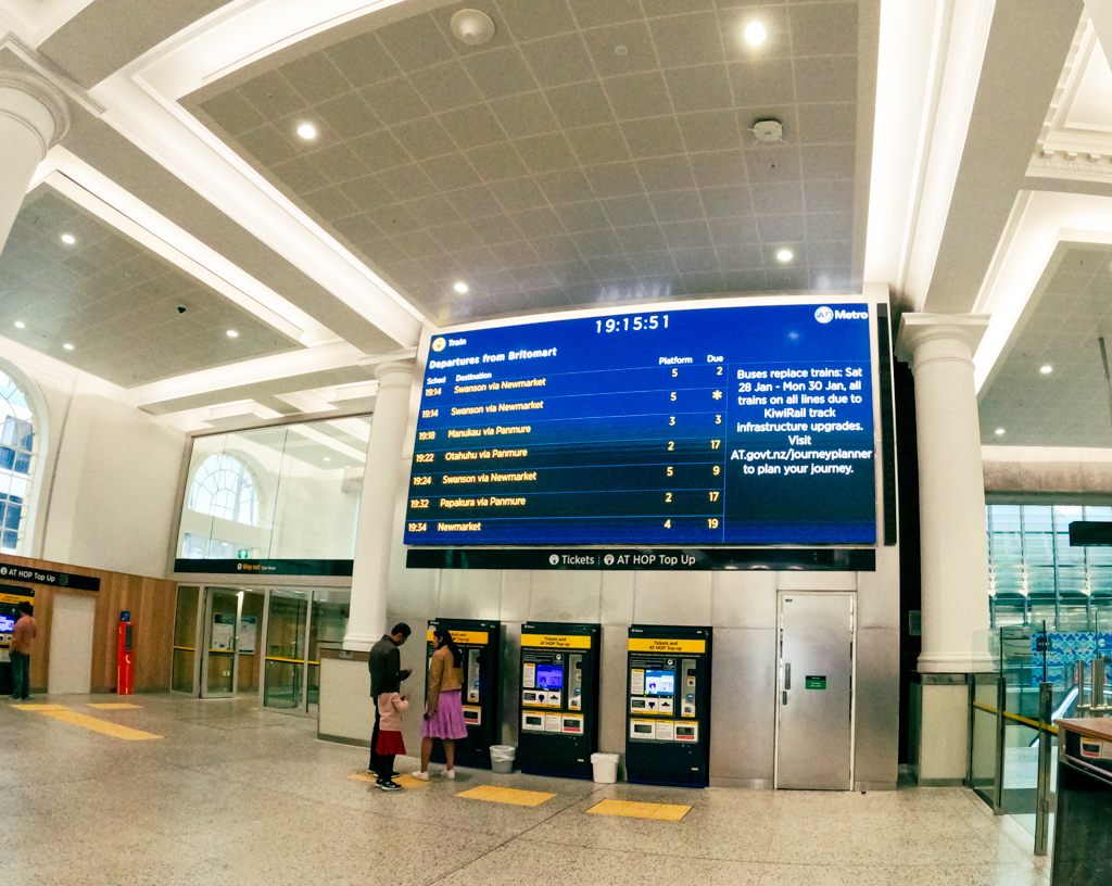 Queens Stを抜けた港にブリトマート(Britomart)駅があります。郊外への電車のターミナル駅です。電車もAT HOPカードが使えます。残念ながらAKL空港へは路線がありません。