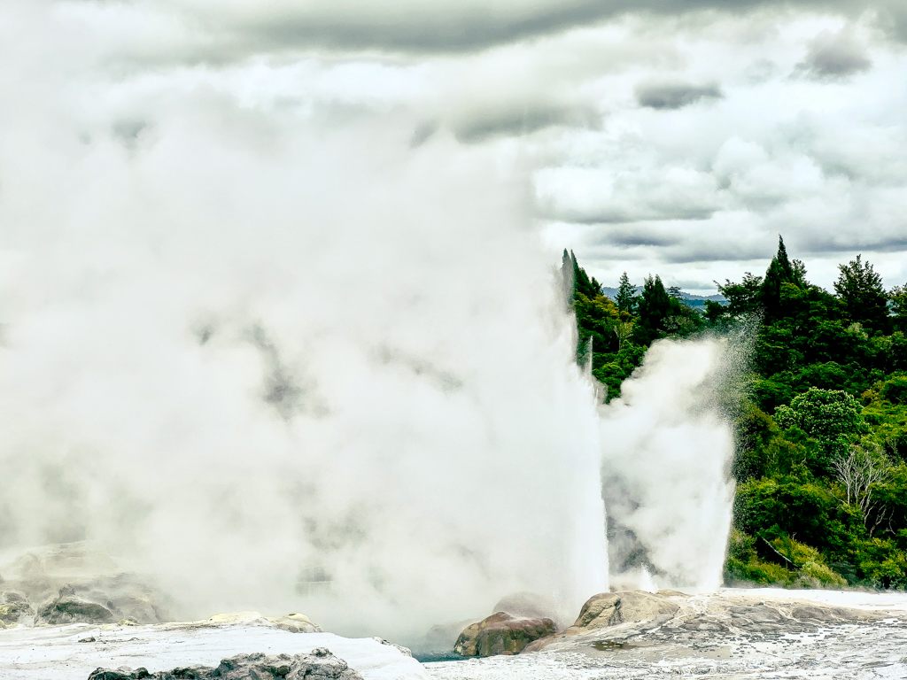 Te Puiaの中にはニュージーランドで有名なポフツ間欠泉があり、地球の息吹を感じることが出来ました。間欠泉の有名な場所は、イエローストーン、アイスランド、そしてロトルアとの説明がありました。