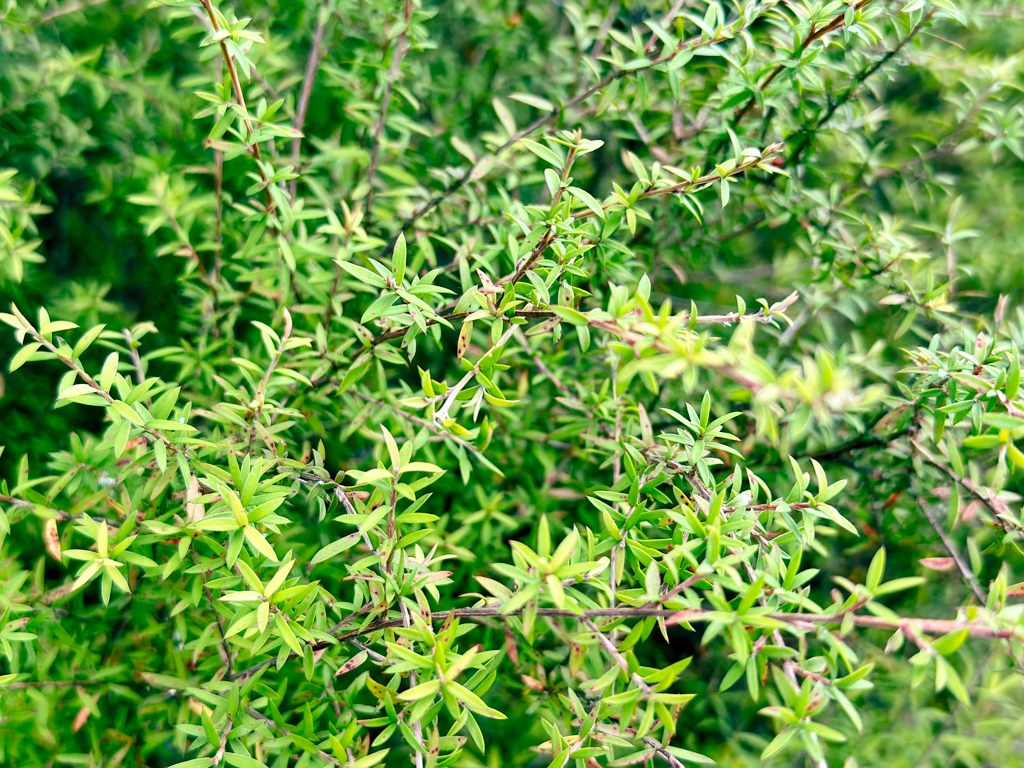 園内にはマヌカハニーの元となる花を咲かせるマヌカの木がありました。開花は12月ー1月の2週間だそうです。
