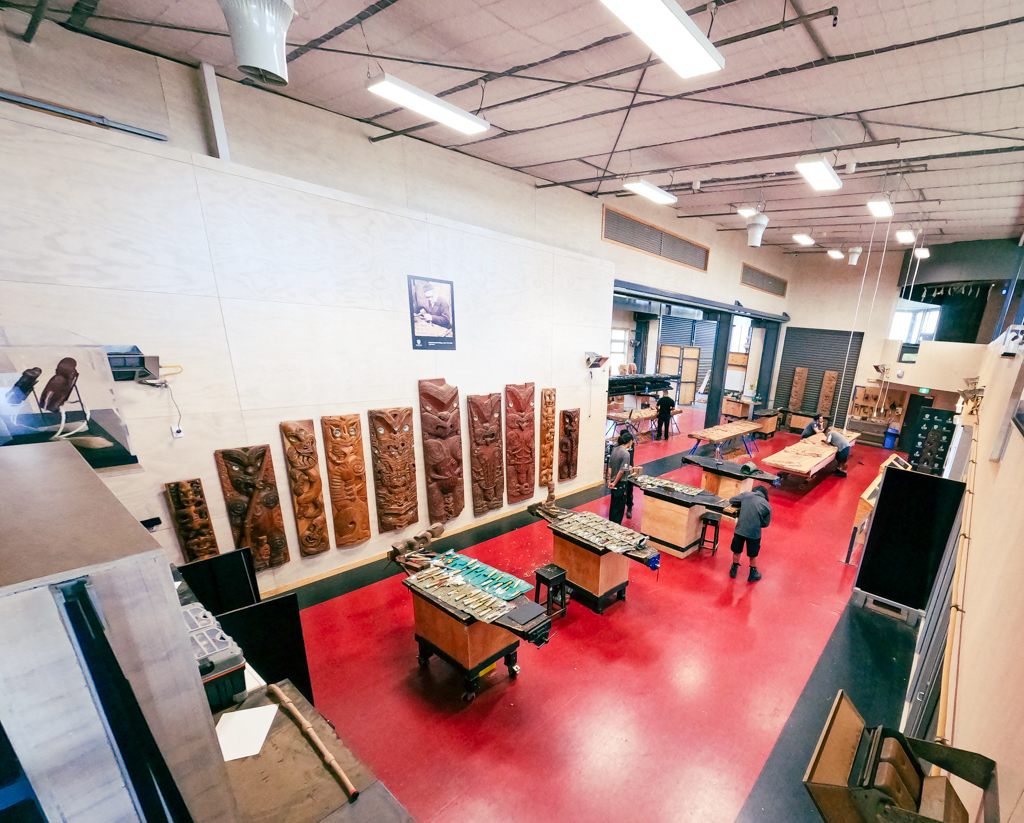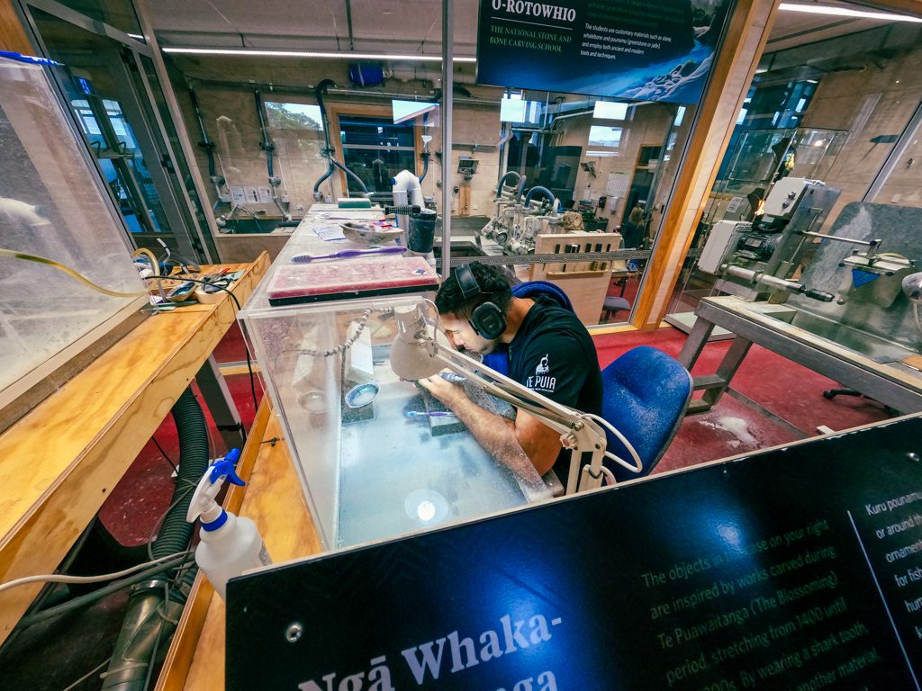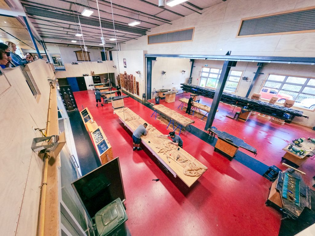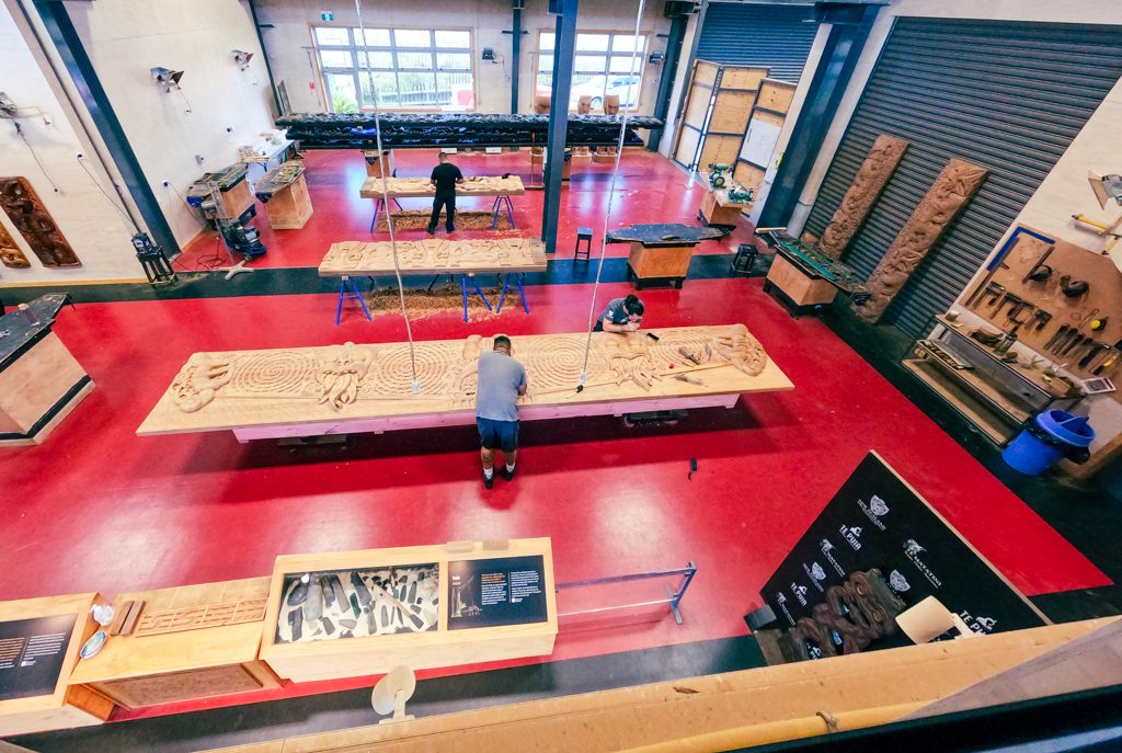 園内には、伝統工芸の木工品の技術を伝える工房があり、何人ものマウリの人たちが作業していました。