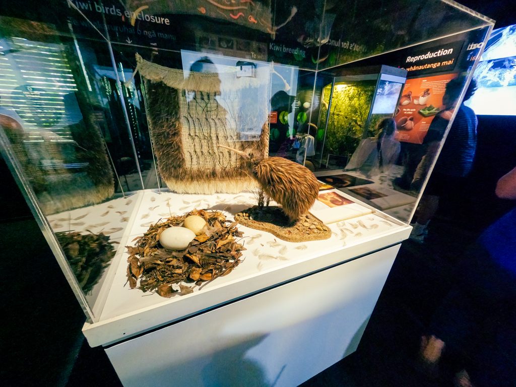 ニュージーランドの国鳥、キウイの保護展示室がありました。キウイは夜行性の為展示室内は撮影禁止でしたが、赤色灯の下かすかに見ることが出来ました。