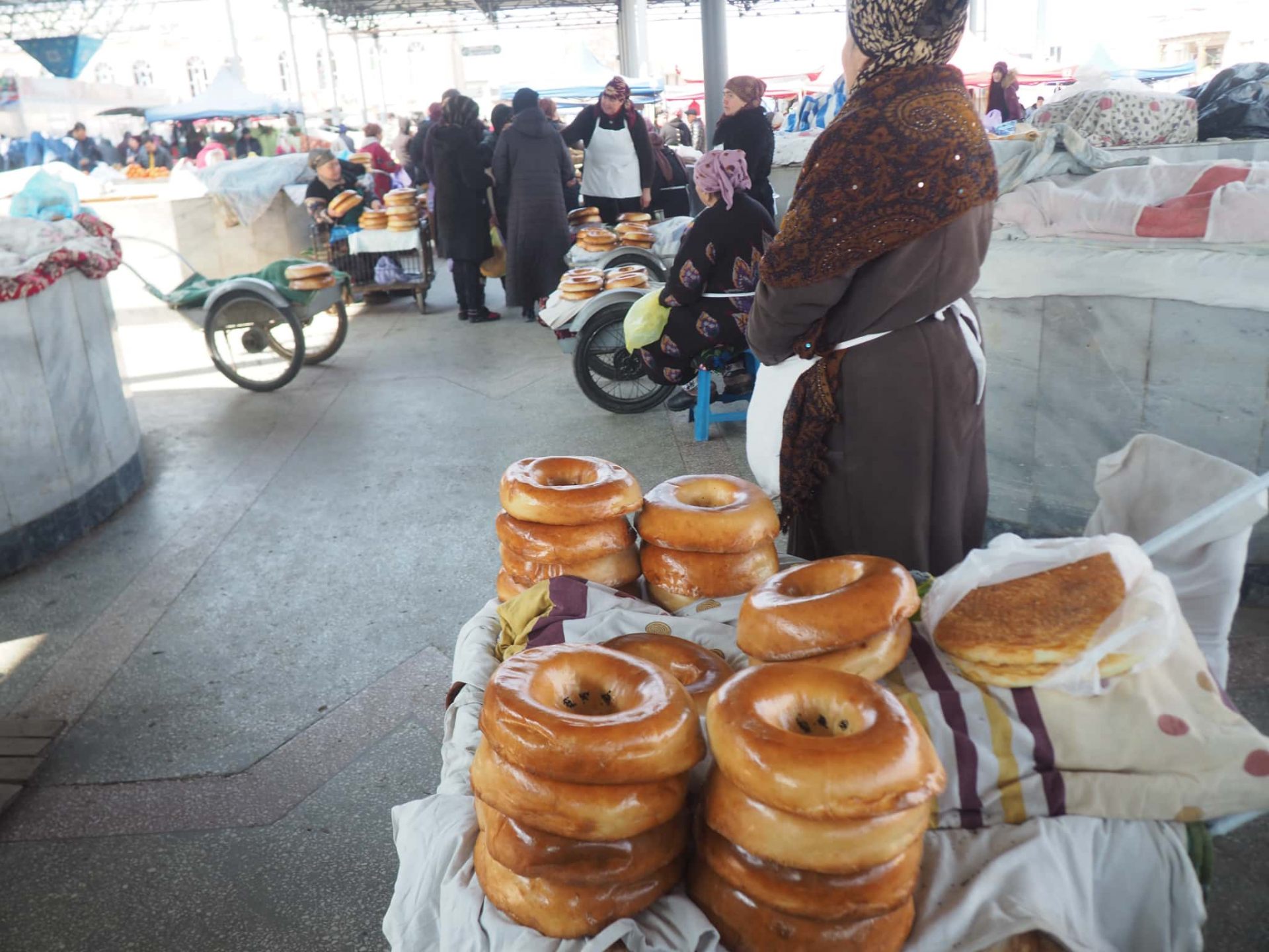 ウズベク人の生活に無くてはならない彼らの主食が、平べったいパンであるナン(nan/нан、ノンとも発音)。ウズベク人は米料理だろうが麺料理だろうがどんな料理でもナンとともに食べ(恐るべき炭水化物爆弾…)、家にどれだけナンがあっても困らないため、誰かの家にお呼ばれした時は必ずナンをお土産に持っていくほど。ちなみにこのときは偶数枚のナンを持っていくのがマナーとされているので、お宅訪問するときはぜひ買って持っていきましょう。