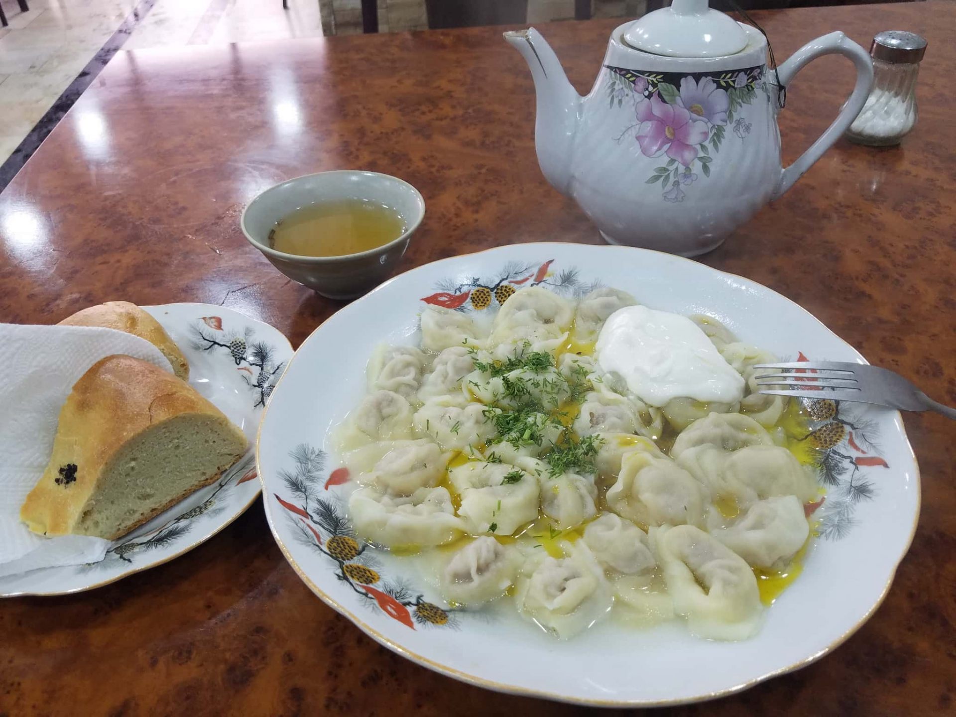 プロフやラグマンと同じくどの食堂でも食べることができる定番料理のマンティ(manti/манти)は肉まんやしゅうまいの類の料理で、中国のマントウや韓国のマンドゥ、さらには日本のまんじゅうにも通じる、シルクロードの偉大さを感じさせてくれる料理。それをさらに小さくした水餃子のような料理がチュチュワラ(chuchvara/чучвара)は、ロシアのペリメニとほぼ同じ料理です。