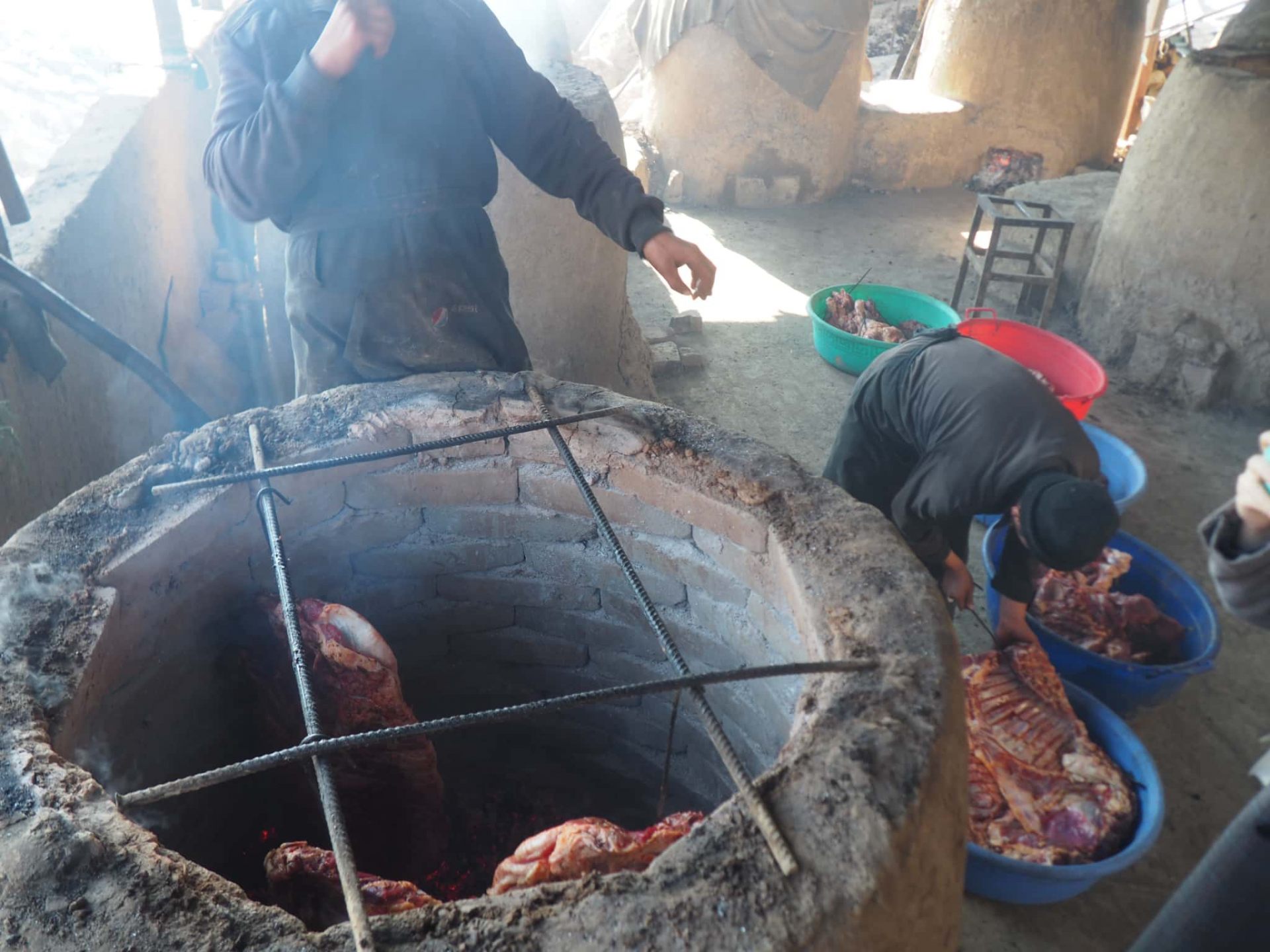 私がウズベキスタンで一番おいしいと思う肉料理がタンディール・グシュト(tandir go’sht/тандир гўшт)またはタンディール・ケバブ(tandir kebab/тандир кебаб)。大きな窯に子羊の塊肉と香りつけの葉っぱを入れ、蒸し焼きにします。肉は脂がほどよく落ち、スモーク状態になっていていくらでも食べられそうなお味。主に山岳地帯で作られる料理ですが、お店がいくつも並んでいるのがサマルカンドからシャフリサーブスに行く峠道。中でも峠のてっぺん近くにあるKatta Tosh Tandiriはいつもお客でにぎわう名店で、この道をタクシーで通る際はぜひ立ち寄るようリクエストしてみましょう。