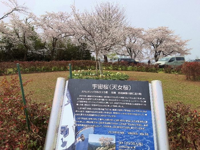 な、なんと、宇宙を旅した全国に数本しかない「宇宙ひょうたん桜」を羽衣天女伝説にちなんで「天女桜」として大切に育てているそうですが、この日美しい花を咲かせていました。