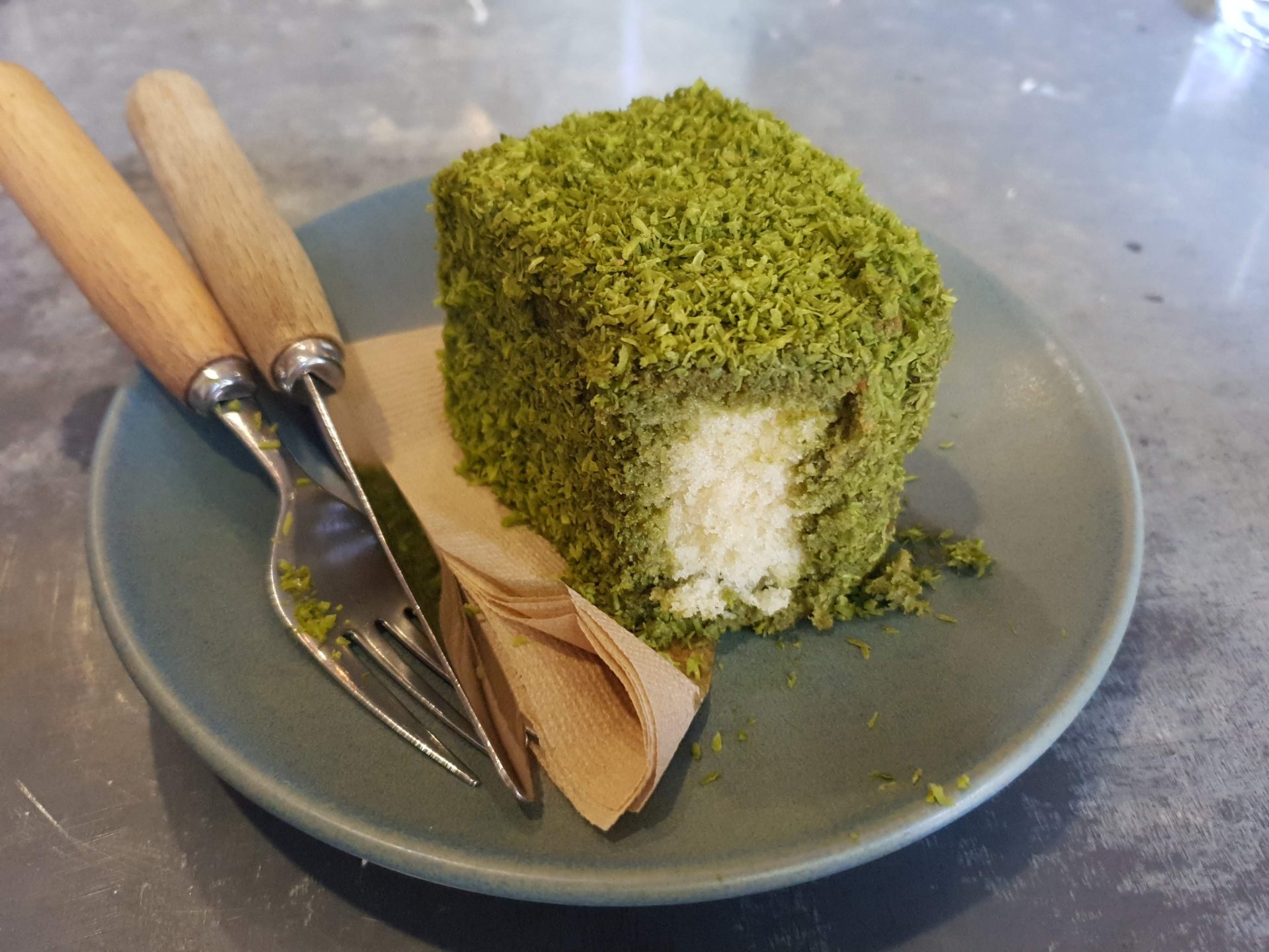 シドニーの中心部からわりと近いサリーヒルズという地域に、ローカルに人気でいつも混んでいる日系のカフェ『Cafe Kentaro』があり、以前見た抹茶のラミントンが濃厚でとてもおいしかったです。