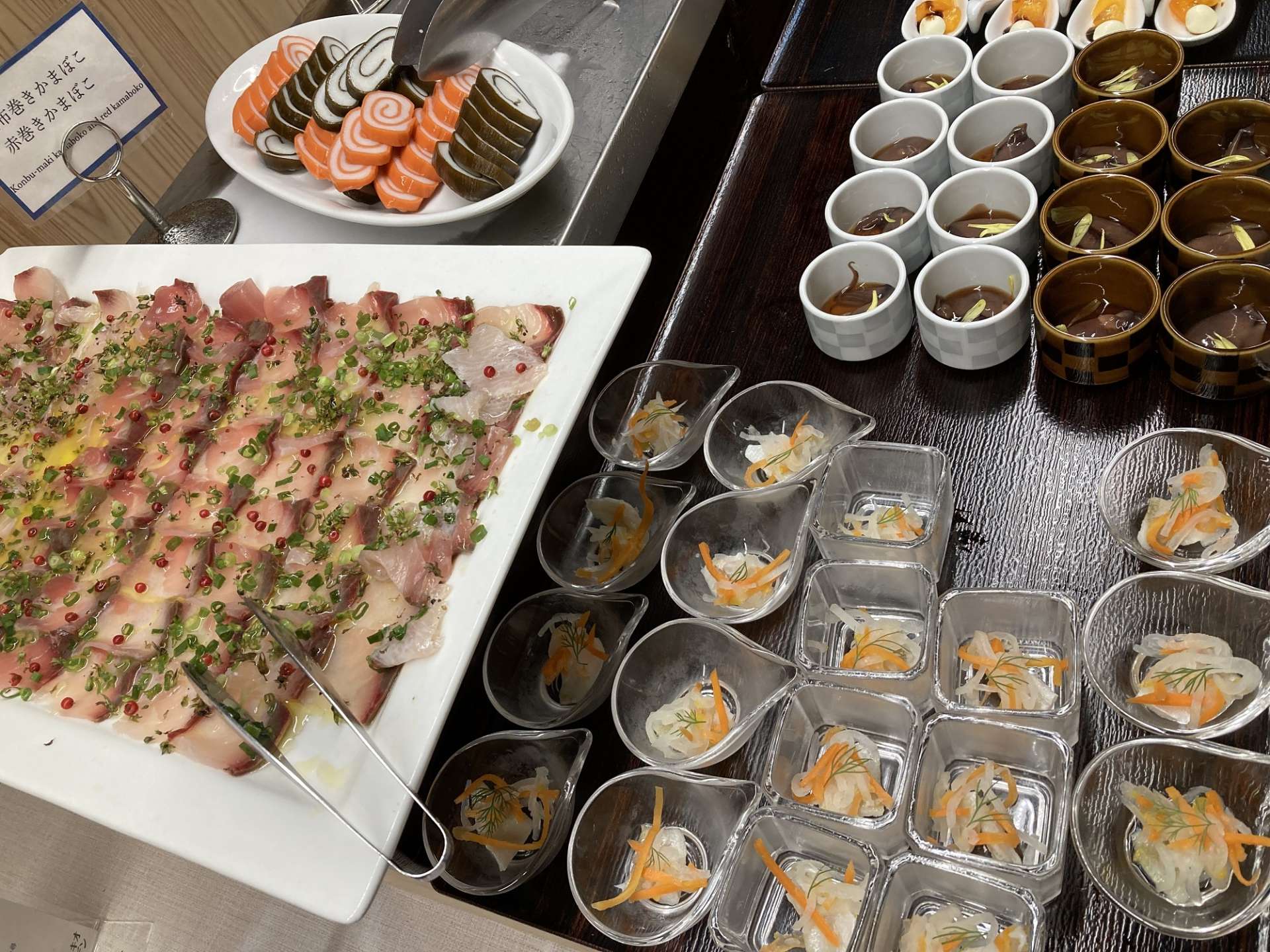 ブッフェスタイルの朝食には、富山ならではの新鮮魚介類などの食材を活かしたメニューや郷土料理、エッグベネディクトを始めとする人気洋食メニューなど約60品をラインアップ。どれも美味しくて全種類を食べてみたくなります。