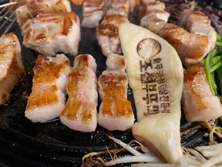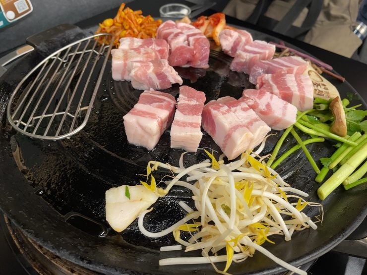 サムギョプサルの焼き方には釜蓋焼きや炭火網焼、鉄板焼きなどいろいろありますが、こちらのお店は釜蓋焼きです。