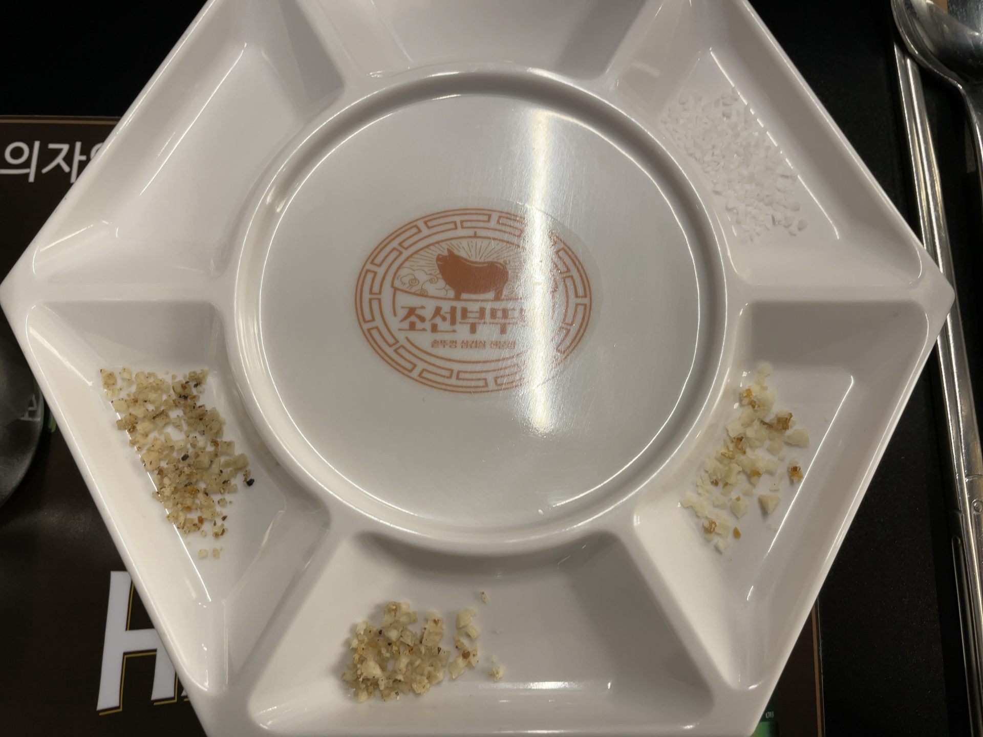 こちらのお店は天日塩、ニンニクタマネギ、ニンニク胡椒、アッケシソウの4種類の塩に付けてサムギョプサルが楽しめます。