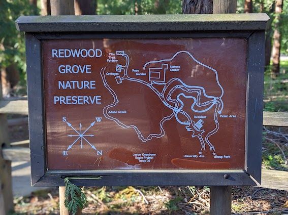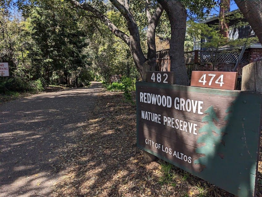 ロス・アルトス市は、サンノゼ市から高速280号線を20分ほど走れば訪問できる山沿いの落ち着いた高級住宅エリアです。その住宅街の一画に、Redwood Grove Nature Preserve(レッドウッド・グローブ自然保護区)があります。