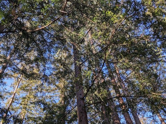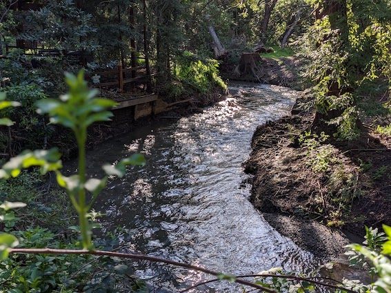 アメリカ杉を通ってトレイルを進むのも楽しいですし、クリーク沿いの道を歩んでいくのも清々しいものです。