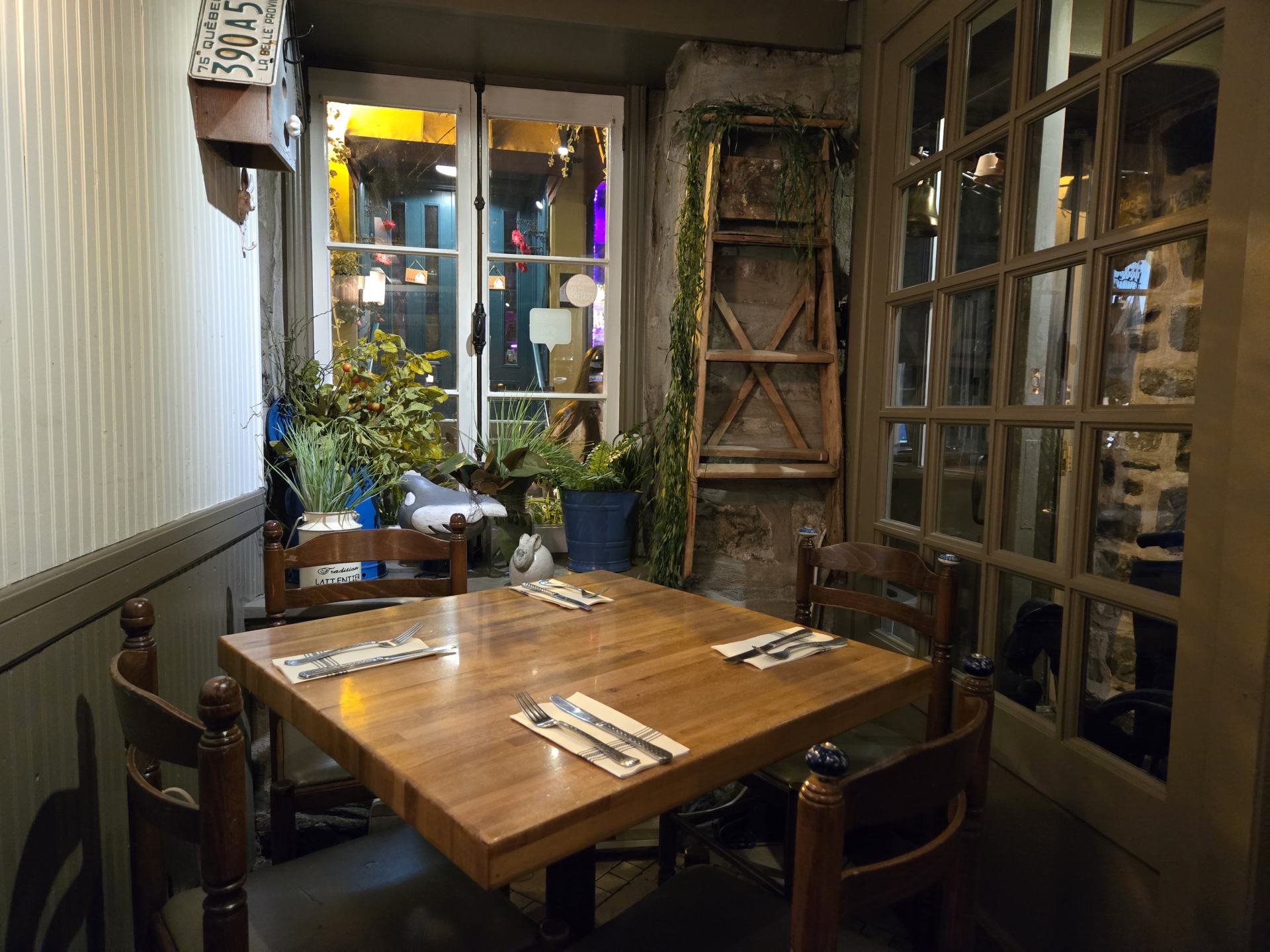 ケベックシティの旧市街の中心、賑やかなショッピング街の一角に位置しながらも、どこか素朴で温かみのある田舎の風情を漂わせるこのレストランは、観光客に広く愛されています。