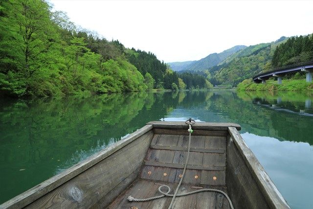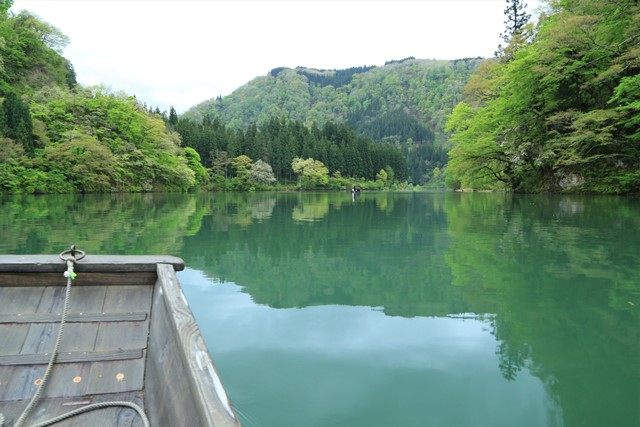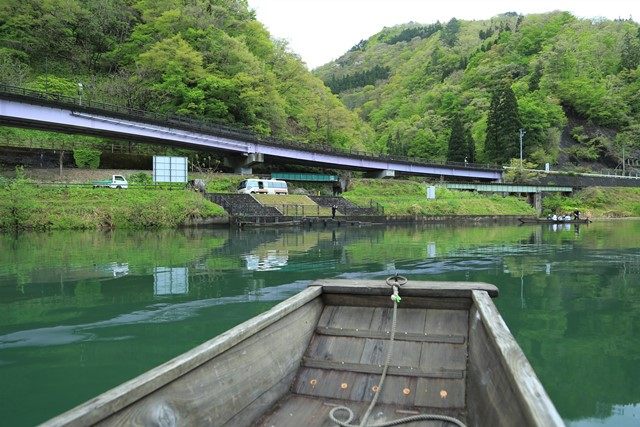 奥会津の新緑を川面から楽しむべく、<a href="https://www.mugenkyo.info/" target="_blank">霧幻峡の渡し</a>を体験してきました。手漕ぎ舟に乗って、只見川沿いに広がる原風景を満喫する長閑な船旅です。今回は、三島町早戸にある船着き場から霧幻峡周辺を巡ります。