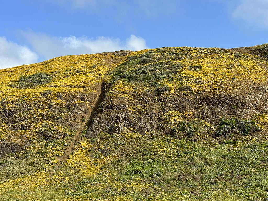 サンフランシスコの南のパシフィカの太平洋沿いに広がるモーリ・ポイント(Mori Point、モーリ岬)が、今年の大雨で野草が一斉開花(スーパーブルーム)と聞いて、早速訪問してきました。