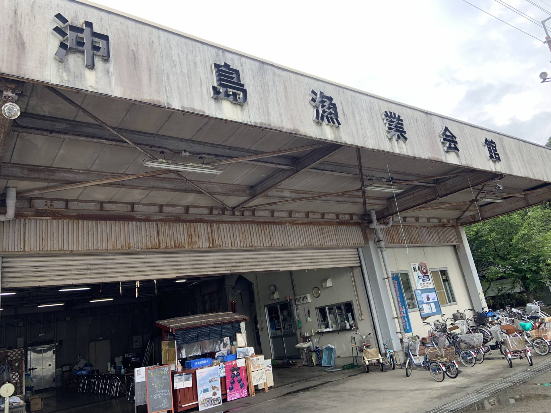 島内には約250人が居住、市立小学校や郵便局などもあります。近江八幡市から船に乗り通学する小学生も居られるそうです。また、自動車や信号機はありません。沖島の自家用車と言えば、一軒あたり一隻以上、所有の船です。港には沢山のマイボートが停泊しています。主な産業は漁業です。