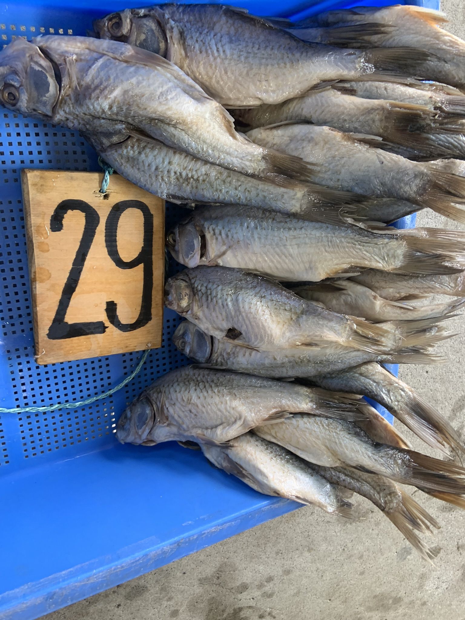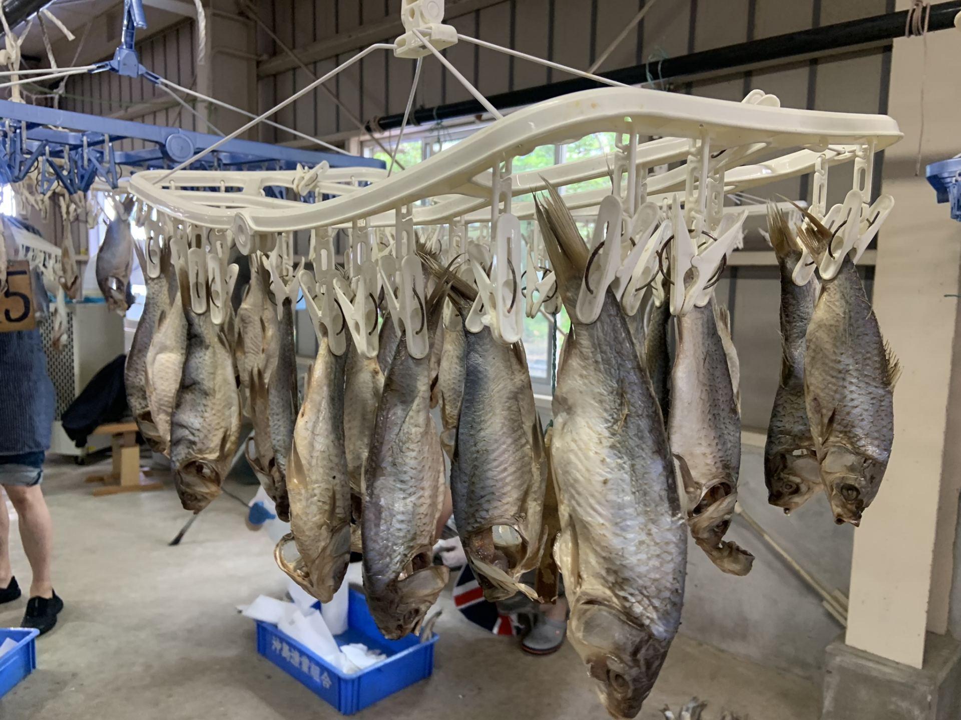 水分をふき取った鮒の頭を下にして吊るします。数時間~置きます。