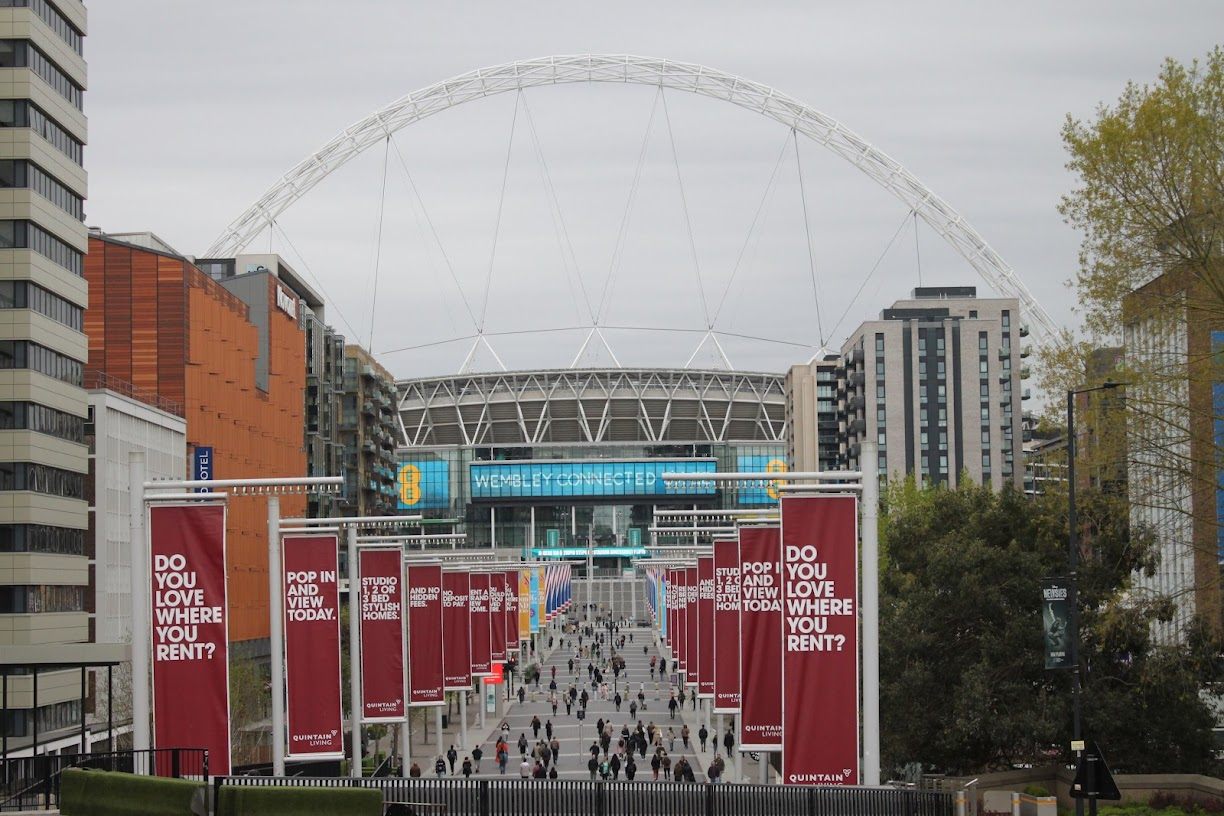 ウェンブリースタジアムが正面にあるので、試合の日は全く違う雰囲気でしょうね。