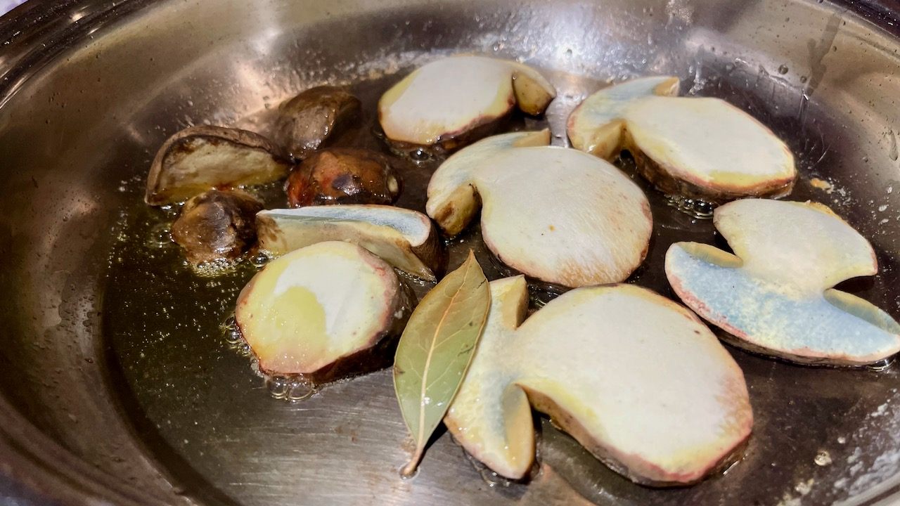 初めて見た”バターボレッテ”というキノコ。これはどうやって食べたらいいか?餅は餅屋に聞け!です。「とりあえず、ソテーしてみた」と返って来た答え。しっかり固く肉厚なのが良いそうです。