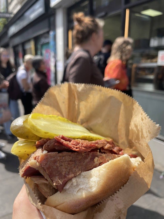 お花に癒された後の腹ごしらえには、ブリックレーンにあるベーグル屋さん「ベーグルベイク」でソルトビーフベーグルをいただくのがおすすめです。