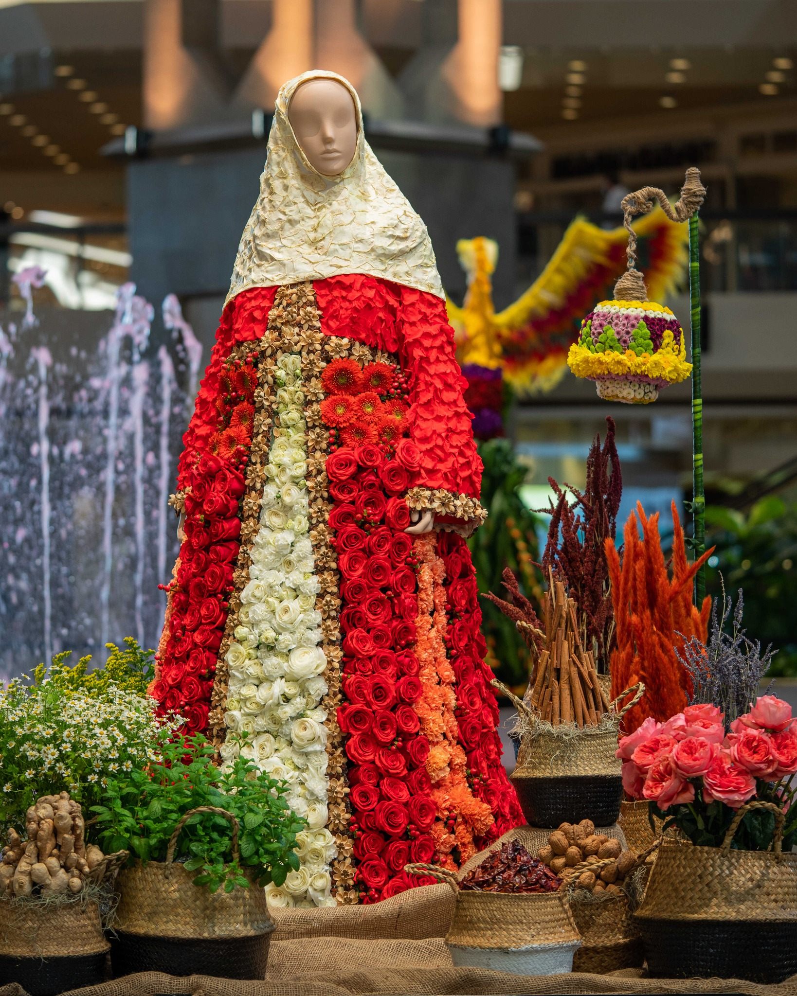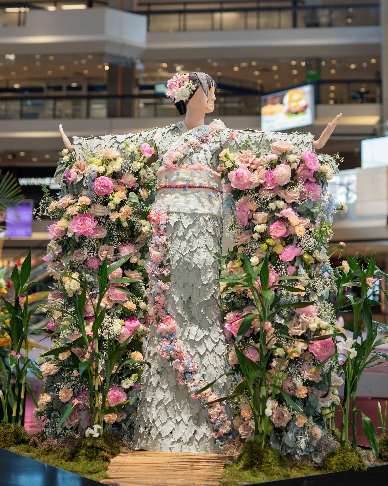 広々とした空間に、それぞれの国の民族衣装や地域の特徴をあらわした、生花の花飾りをまとった15体、そして写真撮影スポットなどのアートを鑑賞しながら、世界旅行をしている気分をあじわってくださいね。