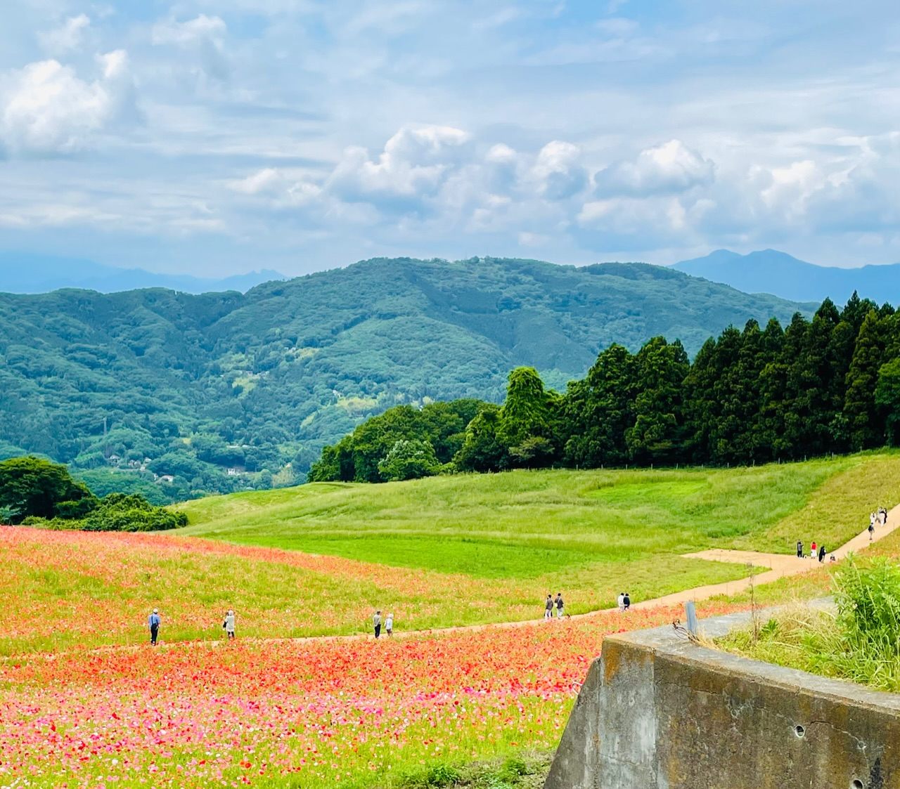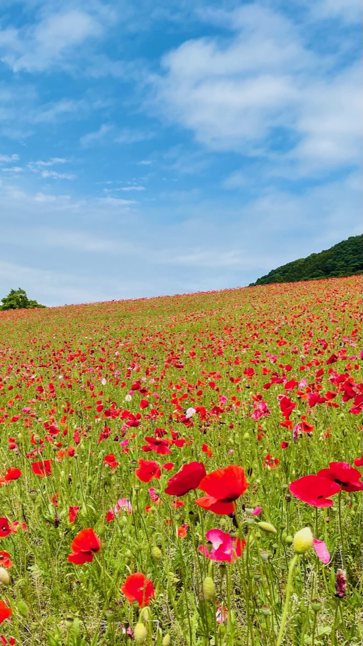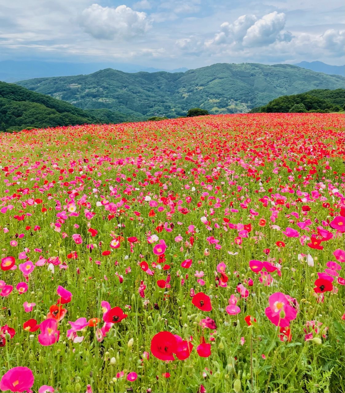 秩父高原牧場とも言い標高500mに広がる山の上の楽園、1,200万本のシャーレーポピーが咲き誇っています。