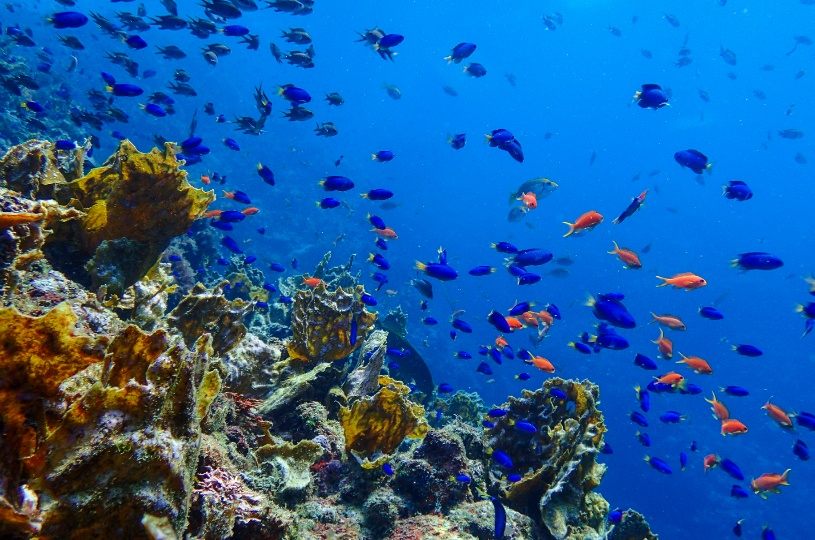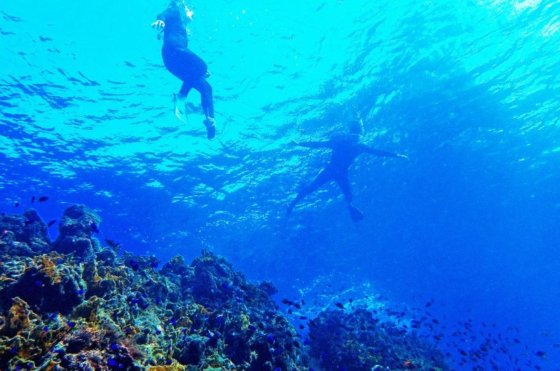 黒潮が流れ込むこと、周囲の開発が行われていないことなど地理的条件から、南国の季節回遊魚や大型の海遊魚も見ることが出来ます。透明度最高の場合約20m先まで見通すことが出来るほどの透明度を誇ります。