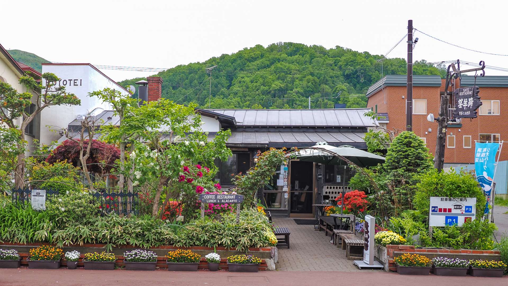 北海道に花のシーズンが到来しましたが、訪れたときにはレストラン望羊蹄の前は、どこにも増して花盛り。