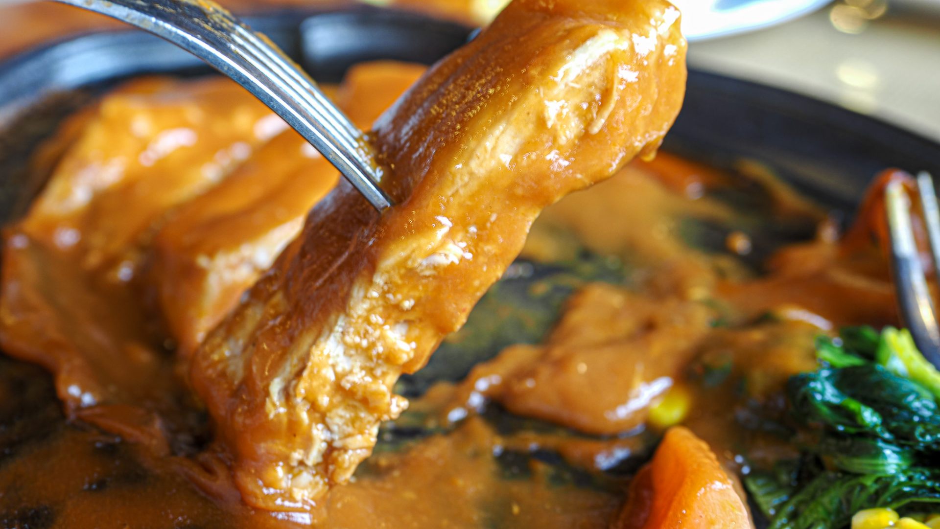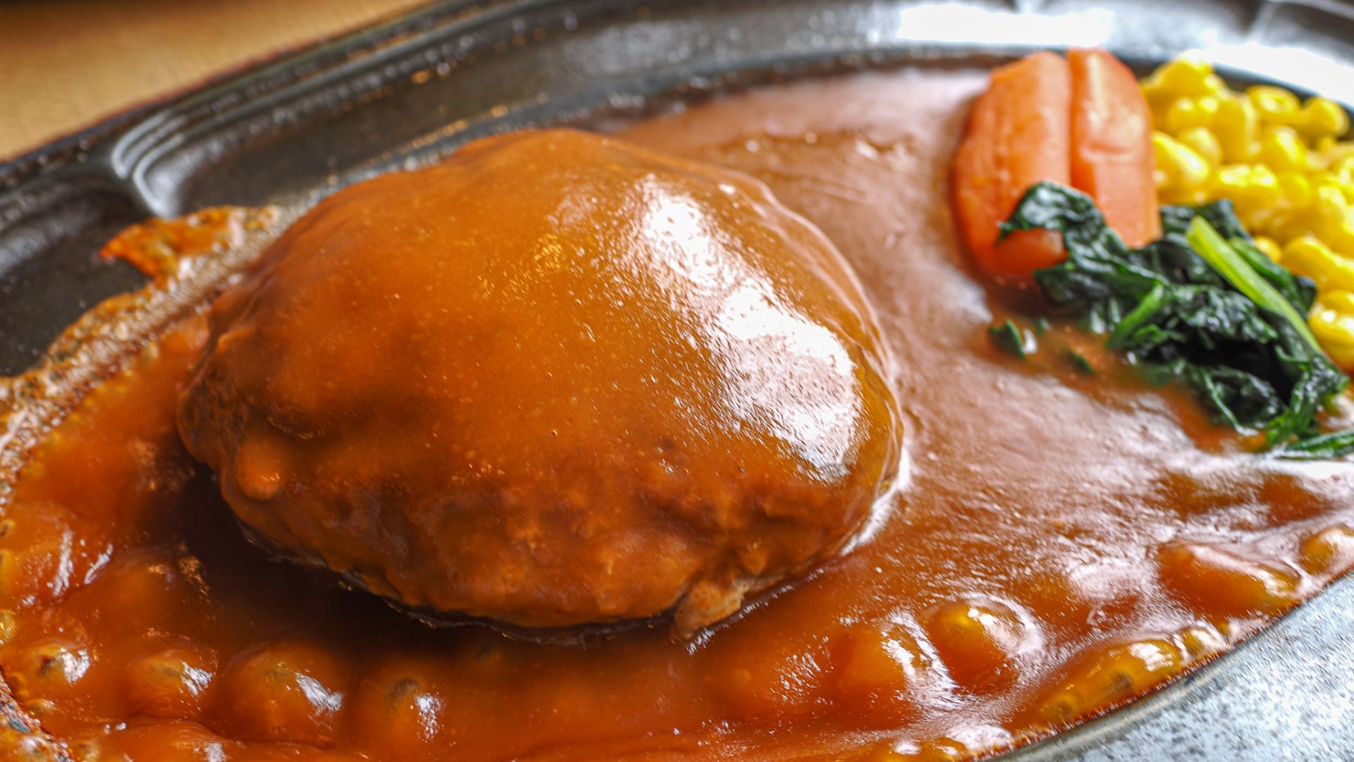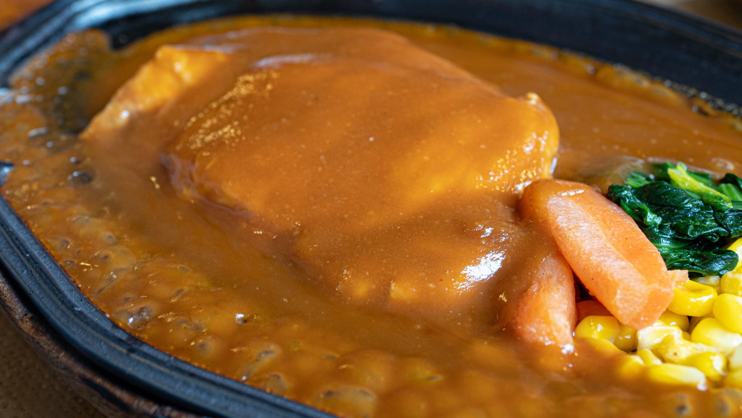 魅惑的な香りが立ち上っている秘伝のデミグラスソースがシチューのようにふんだんにかかっています。