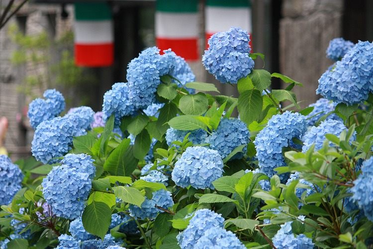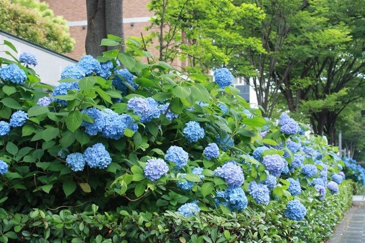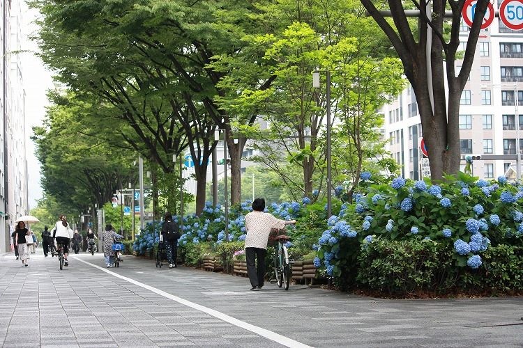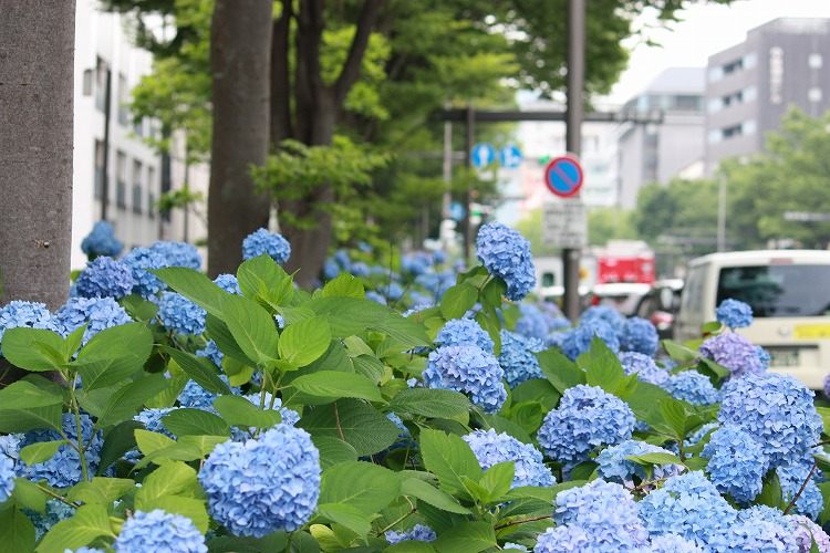 御池通りに咲く紫陽花は、堀川から鴨川へかけて道沿いに咲いています。