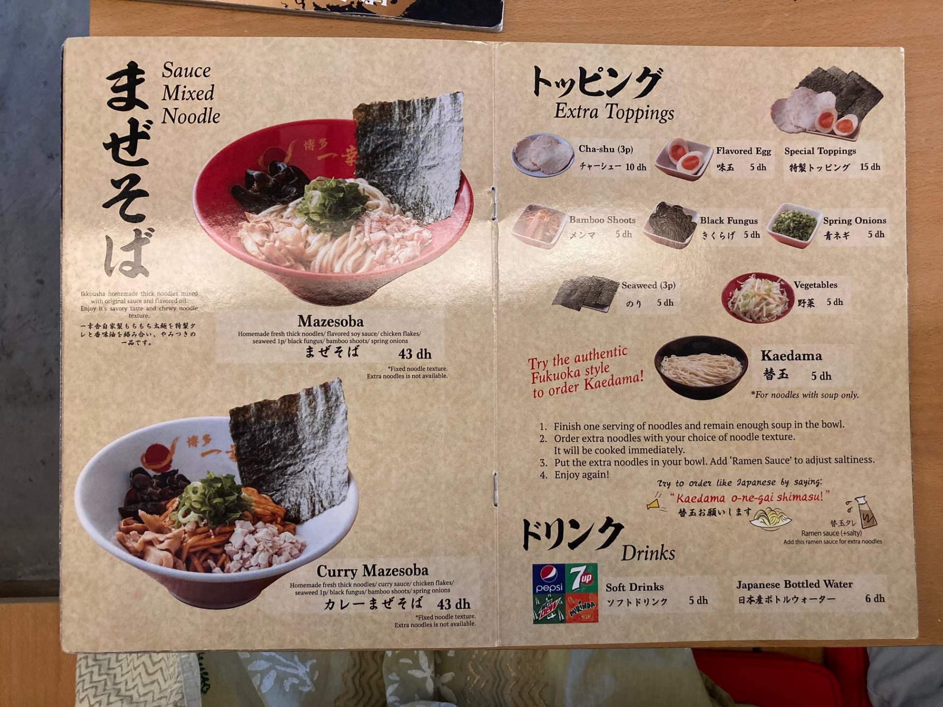 物価の高いドバイではラーメンは高級品で、1杯2000円超えは当たり前ですが、一幸舎ではラーメン1杯AED40(約1500円)〜と、かなりリーズナブル。さらに5AEDで替玉までできちゃいます。ラーメンはコッテリ鶏白湯の他、さっぱり鶏清湯やまぜそばもあり、餃子や唐揚げなどのサイドメニューも、日本のものと遜色の無い美味しさです。一度訪れると何度でも足を運びたくなるでしょう。