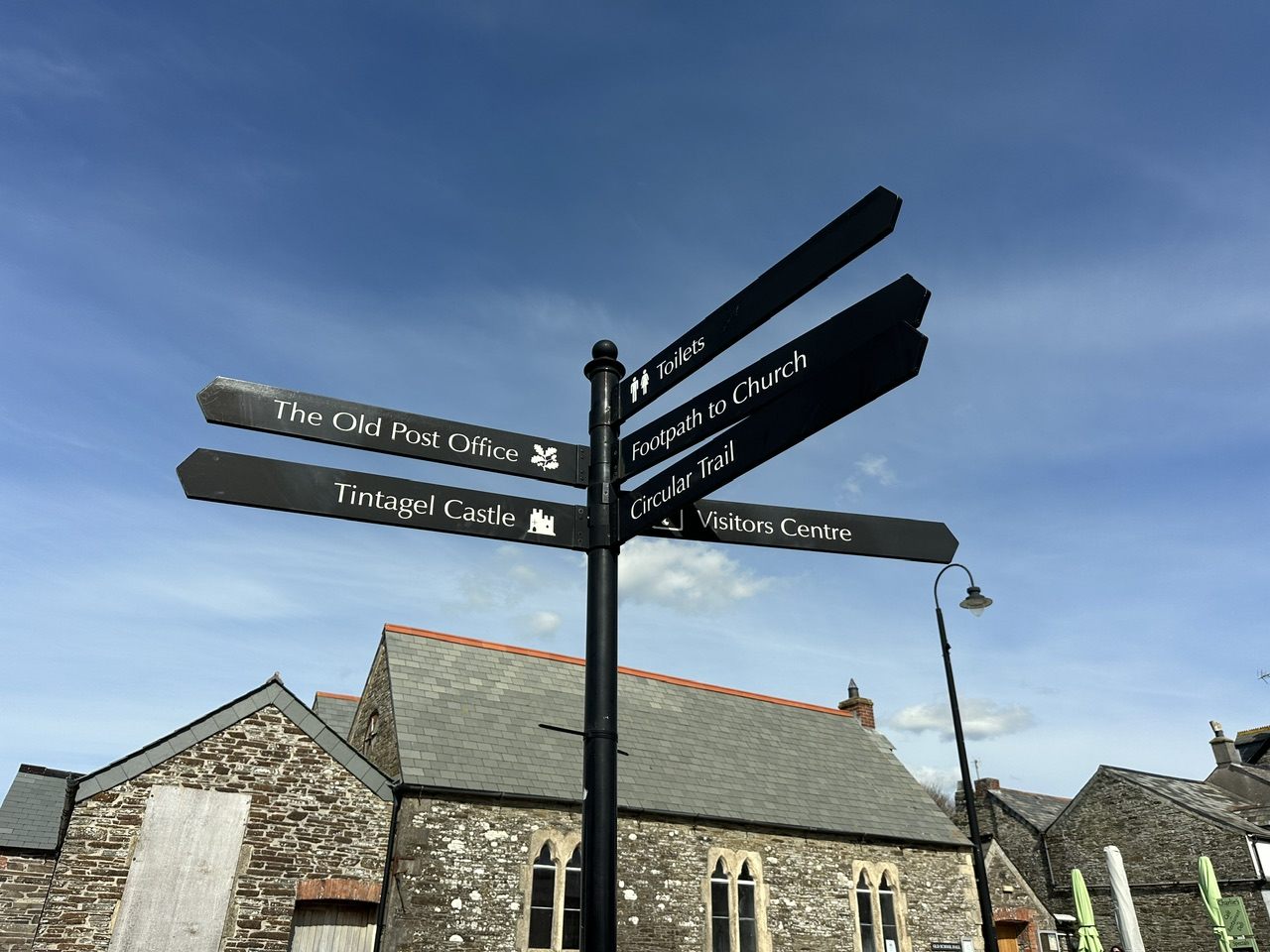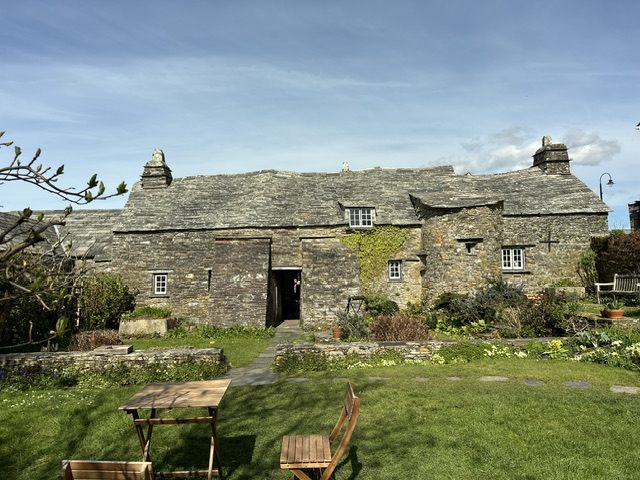 ティンタジェル城の駐車場がある周辺は村の中心地で、クラフト・マーケットが開かれていたり、屋外席でジョッキを傾ける客などであふれ、ひときわにぎやかです。そんななか、少し周りとは違うオーラを放った石造りの、小ぶりな建物が目に入りました。